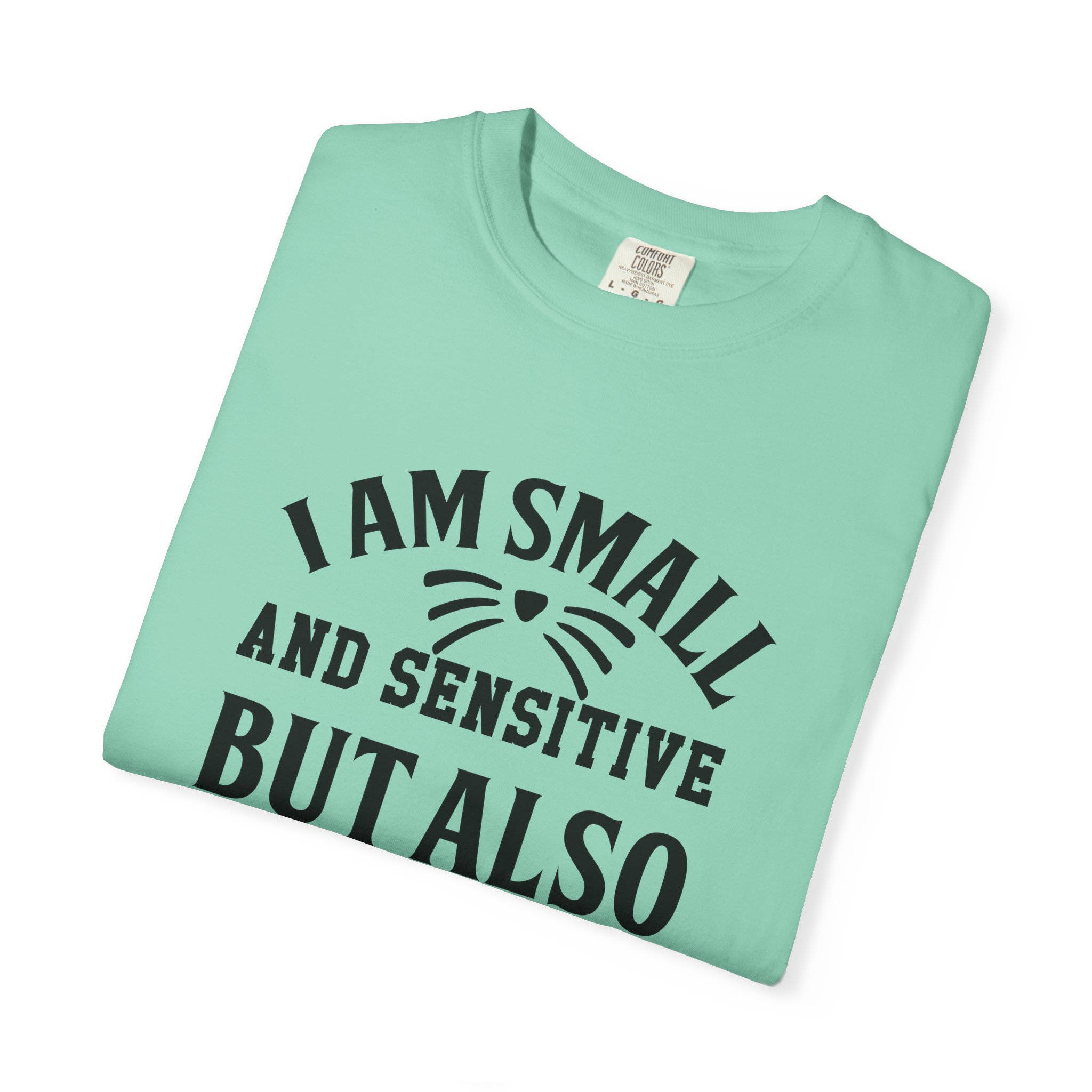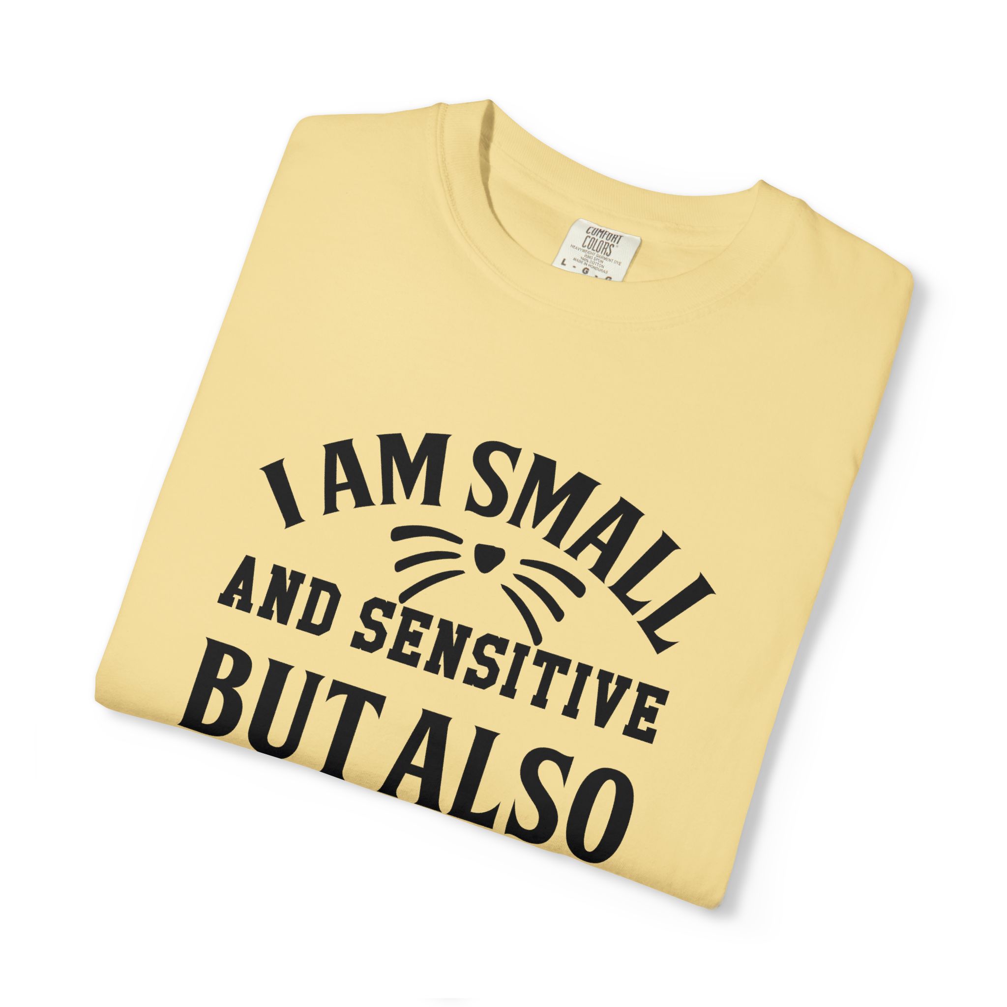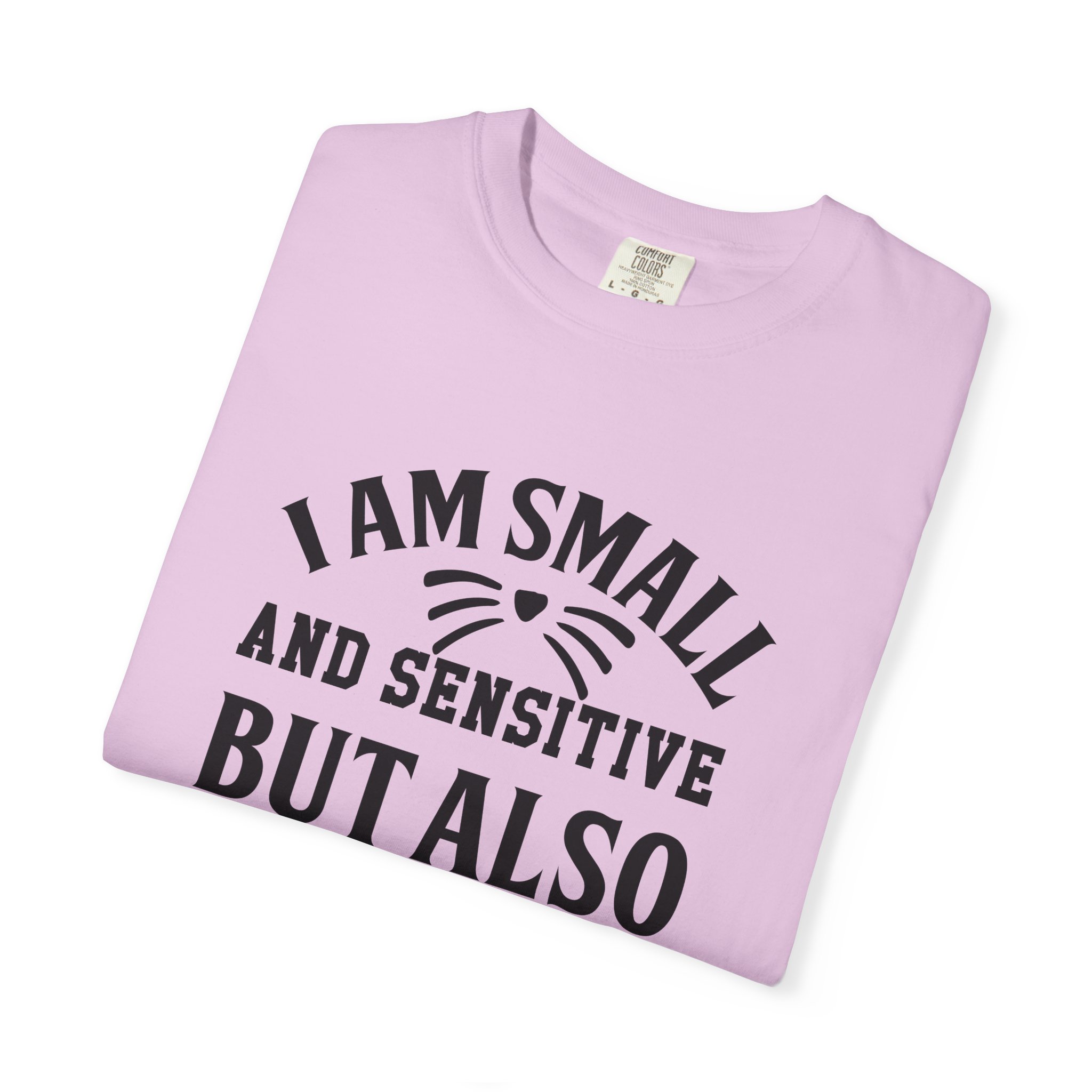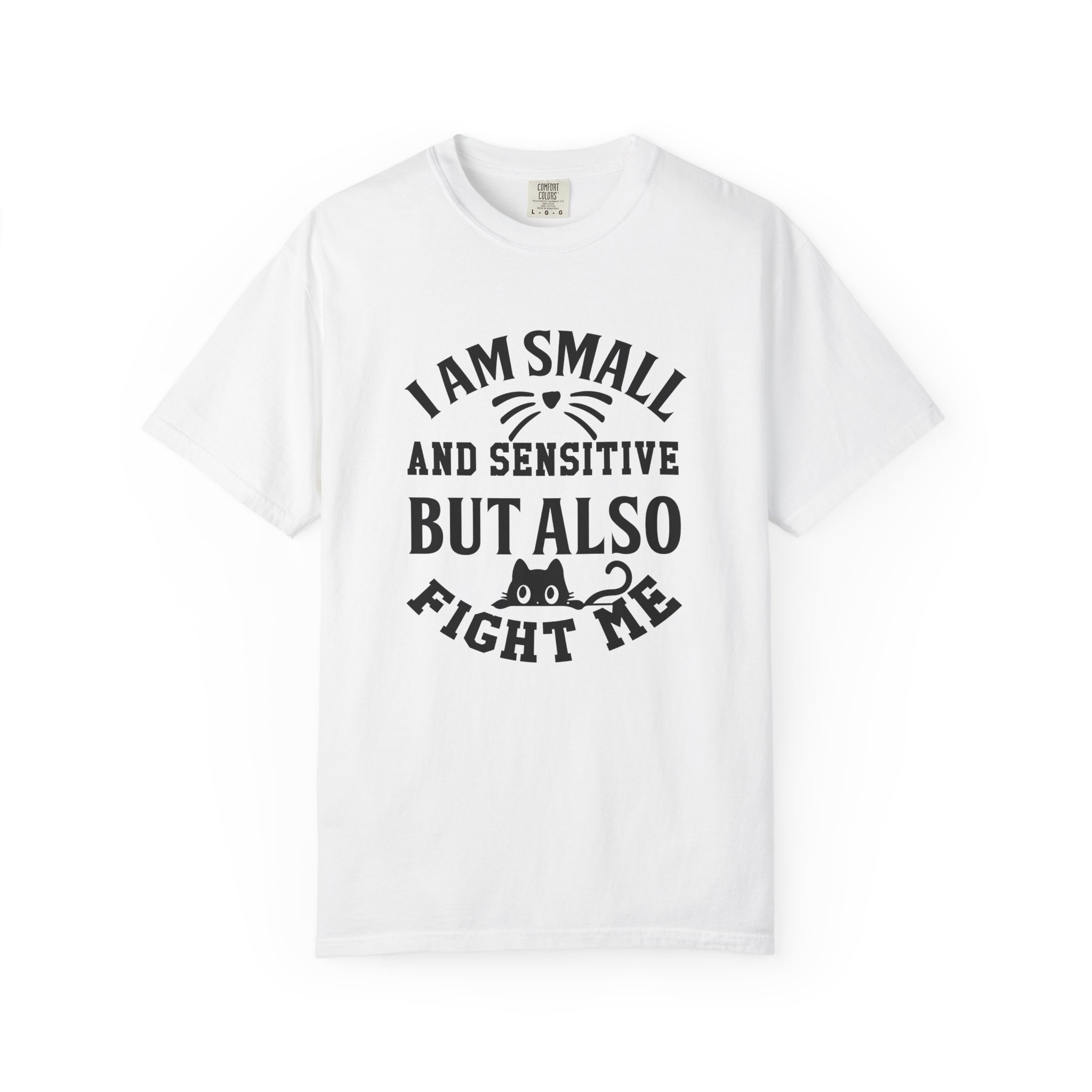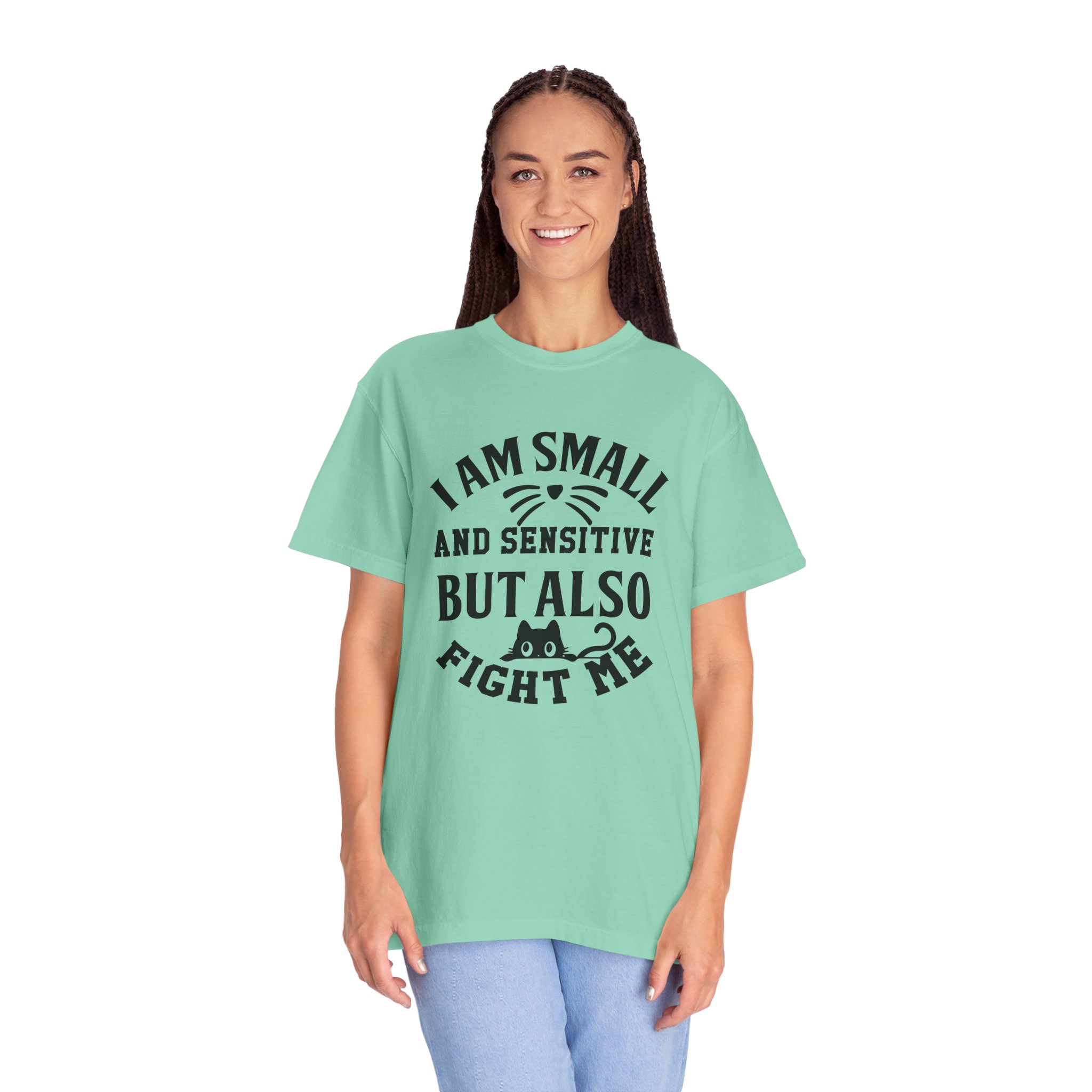 Introducing a stylish Unisex Garment-Dyed T-shirt that embodies a playful yet bold attitude. Featuring a charming design with the phrase ‘I AM SMALL AND SENSITIVE BUT ALSO FIGHT ME,’ this tee is perfect for those who embrace their unique personality. The soft, garment-dyed fabric offers a vintage vibe, making it an ideal addition to casual outings or cozy gatherings with friends. Whether you’re lounging at home, running errands, or attending a casual party, this shirt adds a touch of humor and personality to your wardrobe. Ideal for cat lovers and anyone with a spirited sense of self, this tee makes a fantastic gift for birthdays, holidays, or simply as a fun treat for yourself. Celebrate individuality and comfort with this go-to t-shirt for everyday wear.