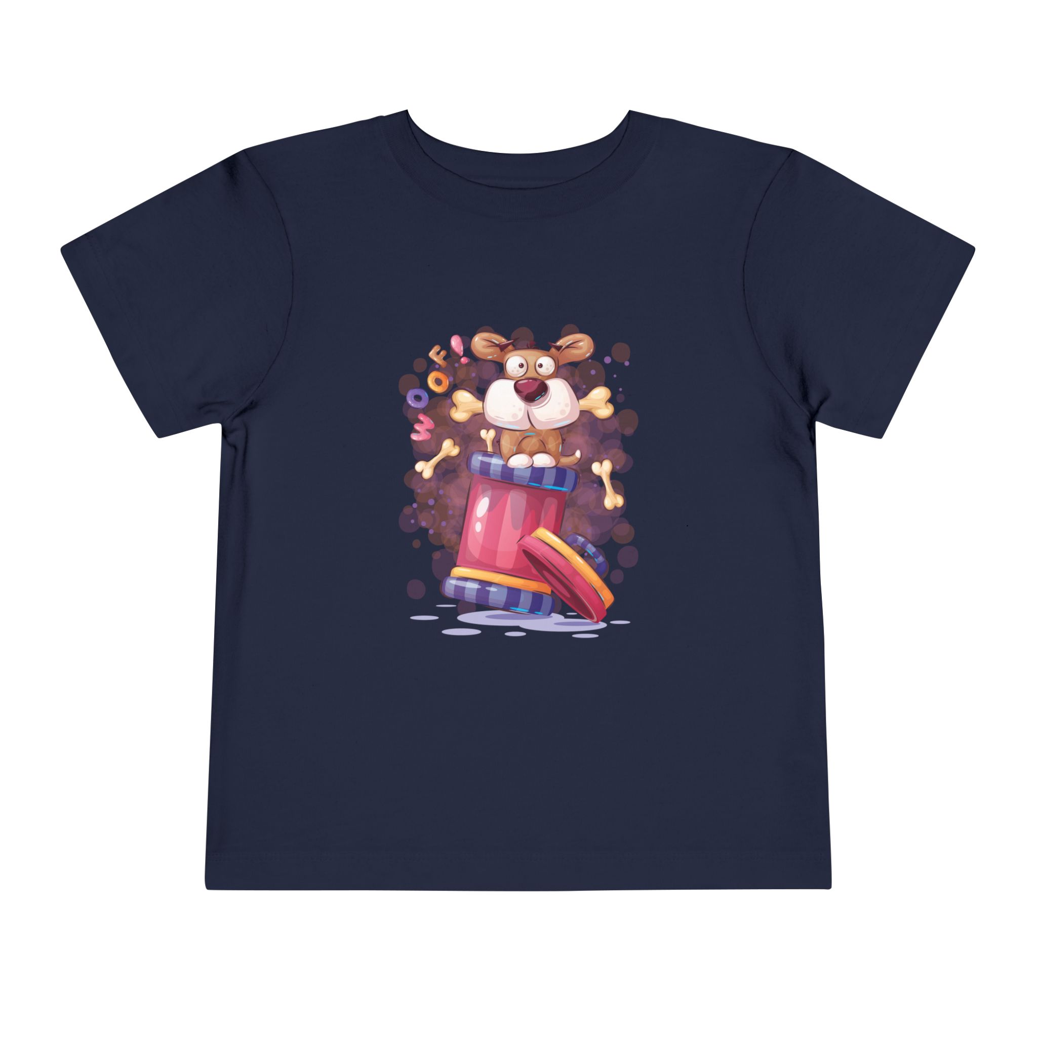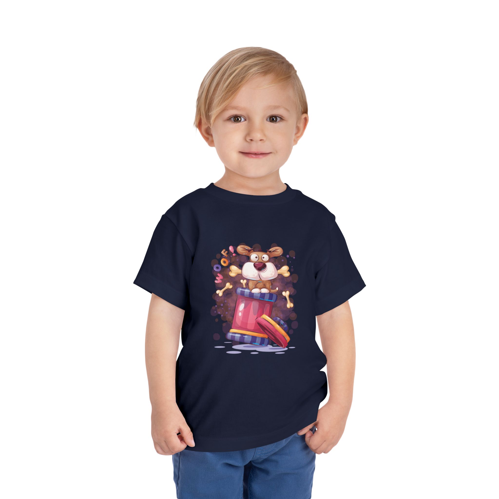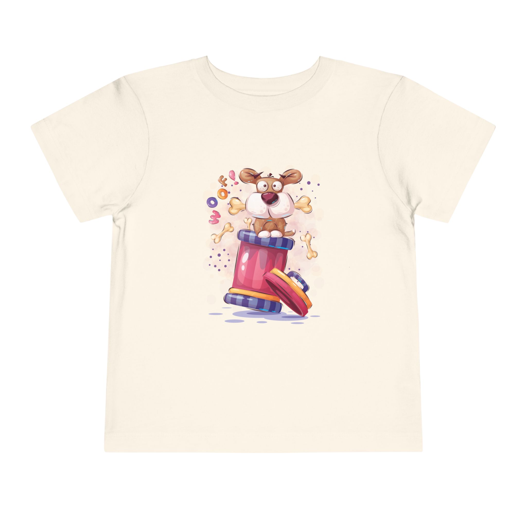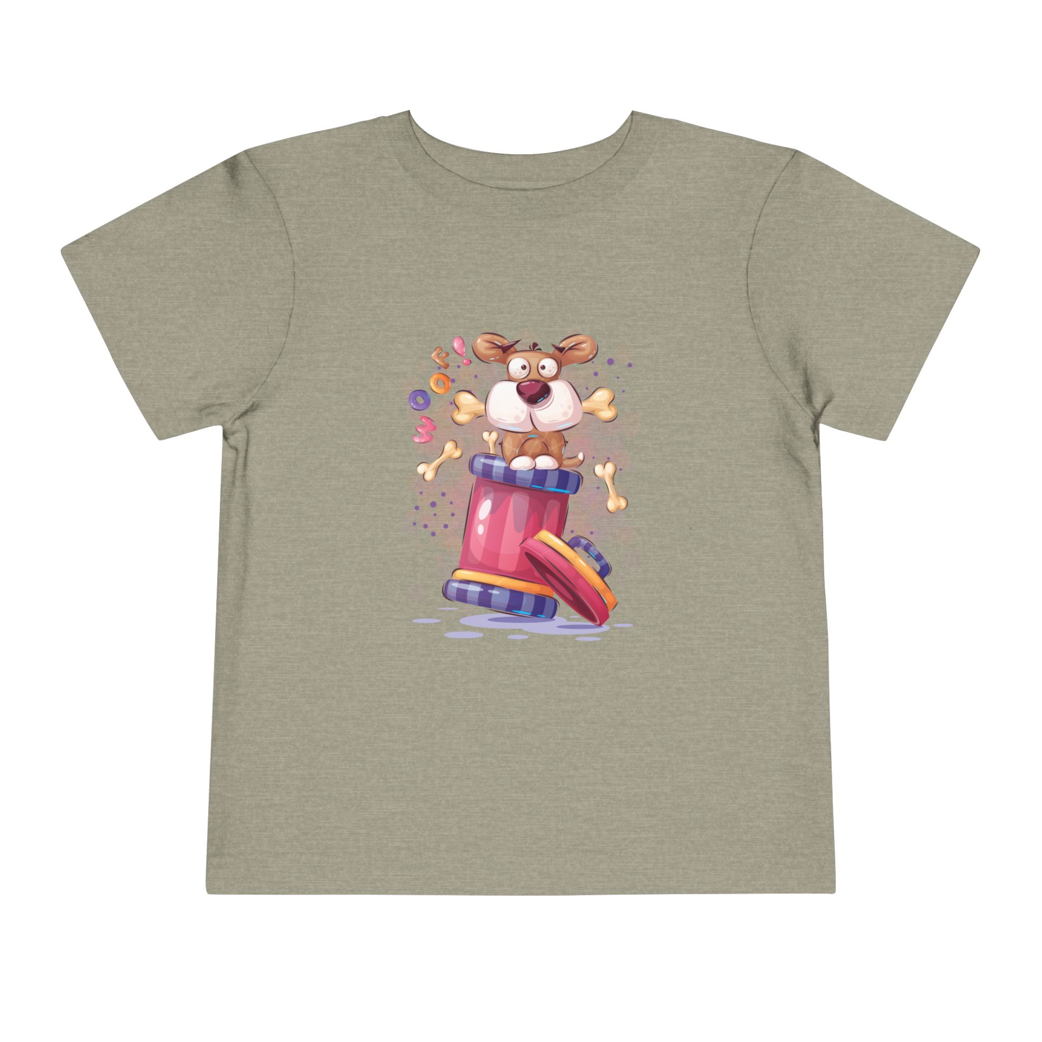 Playful Puppy Pop-Out Drum Toddler T-Shirt – Cute Dog Cartoon Graphic Tee for Kids, Boys & Girls.