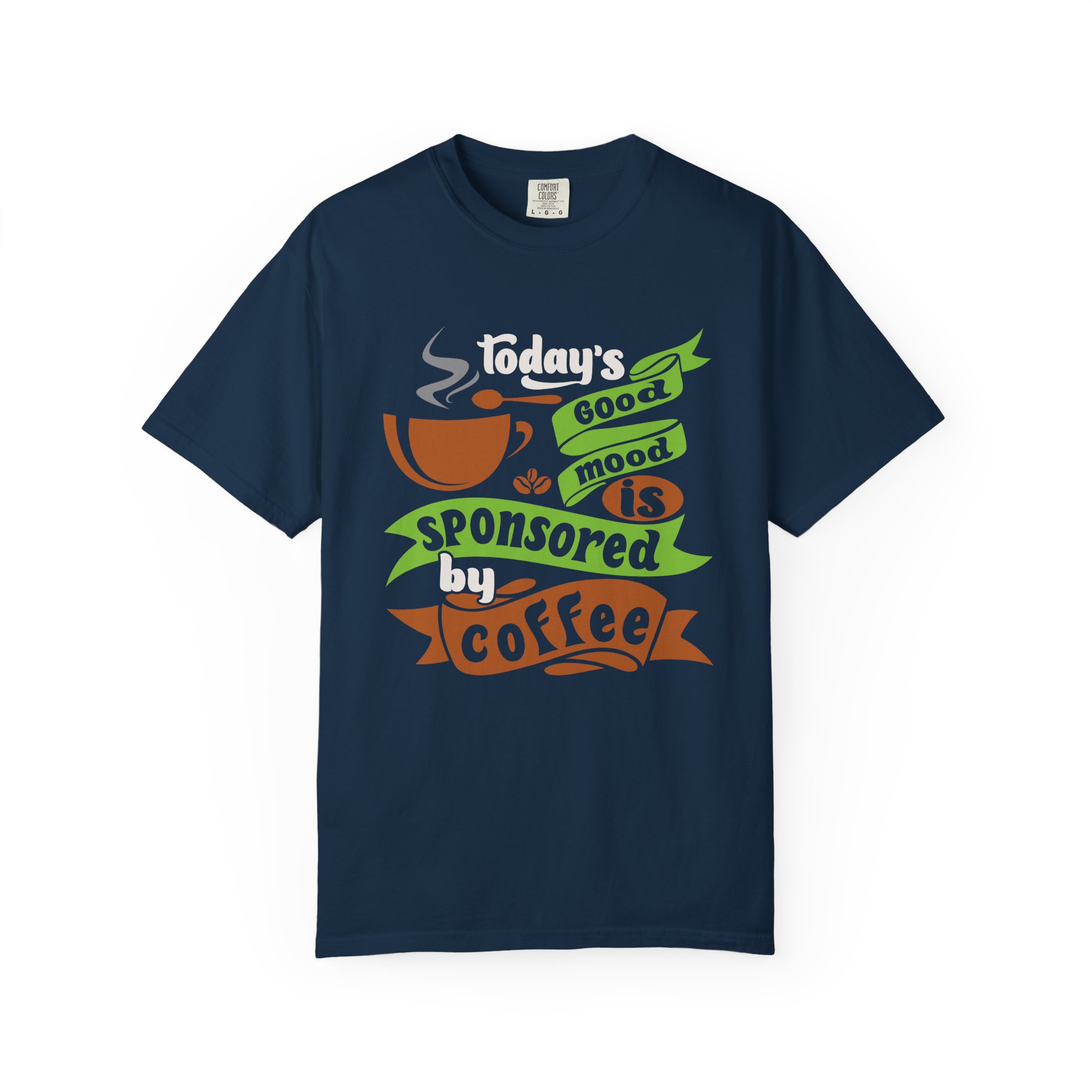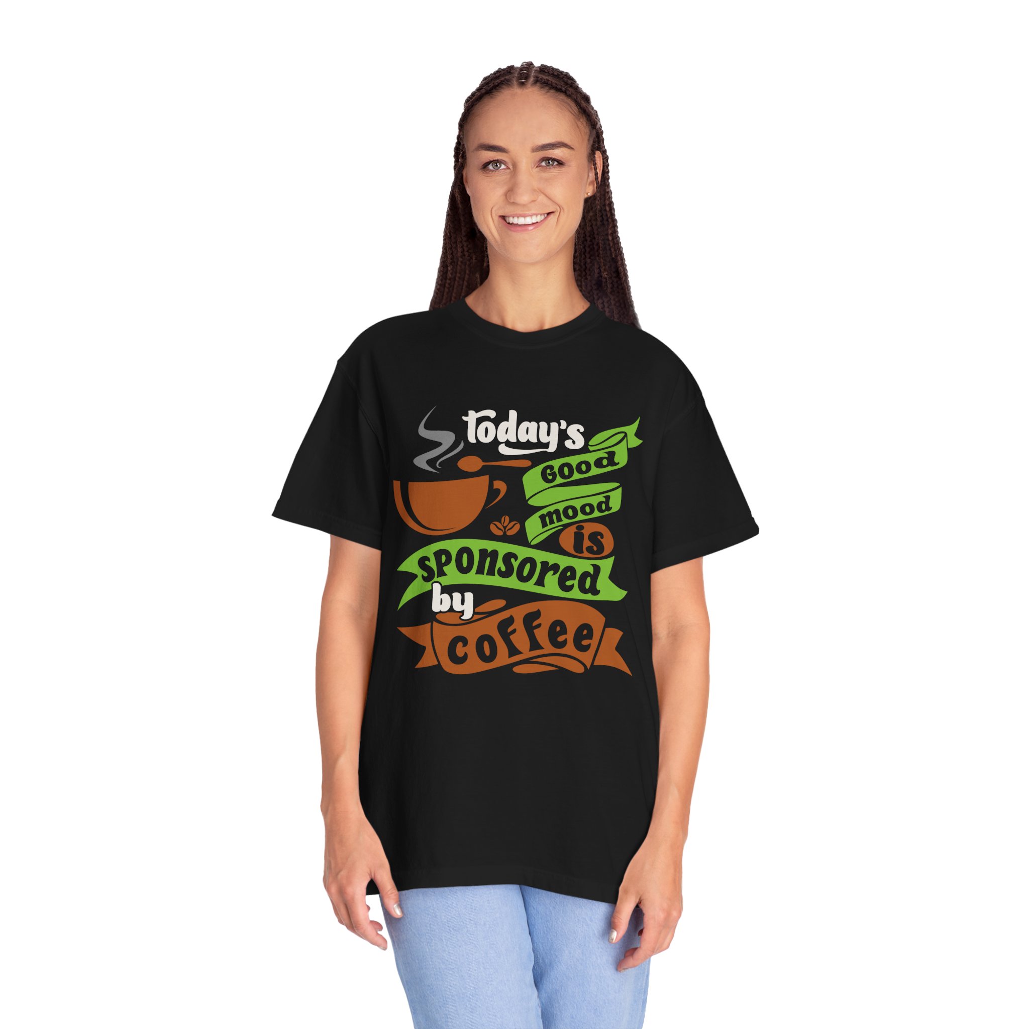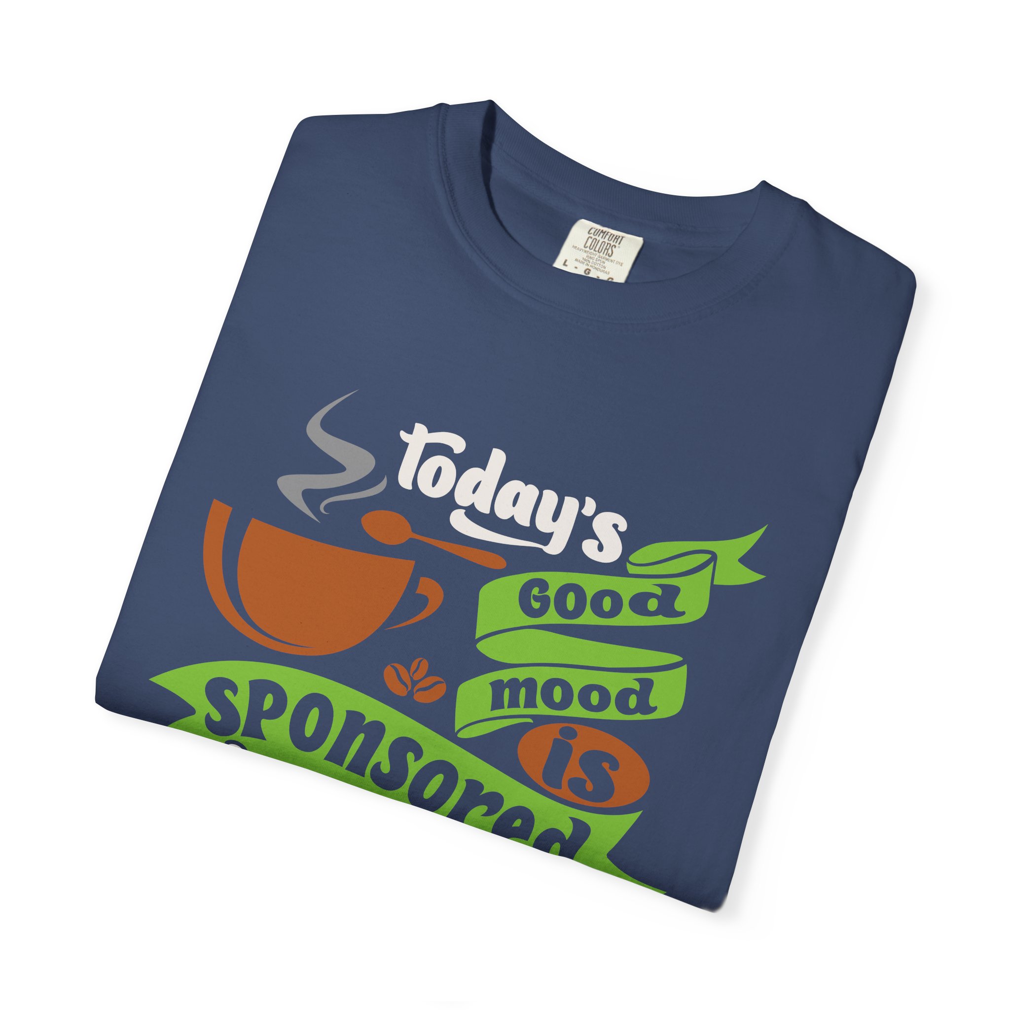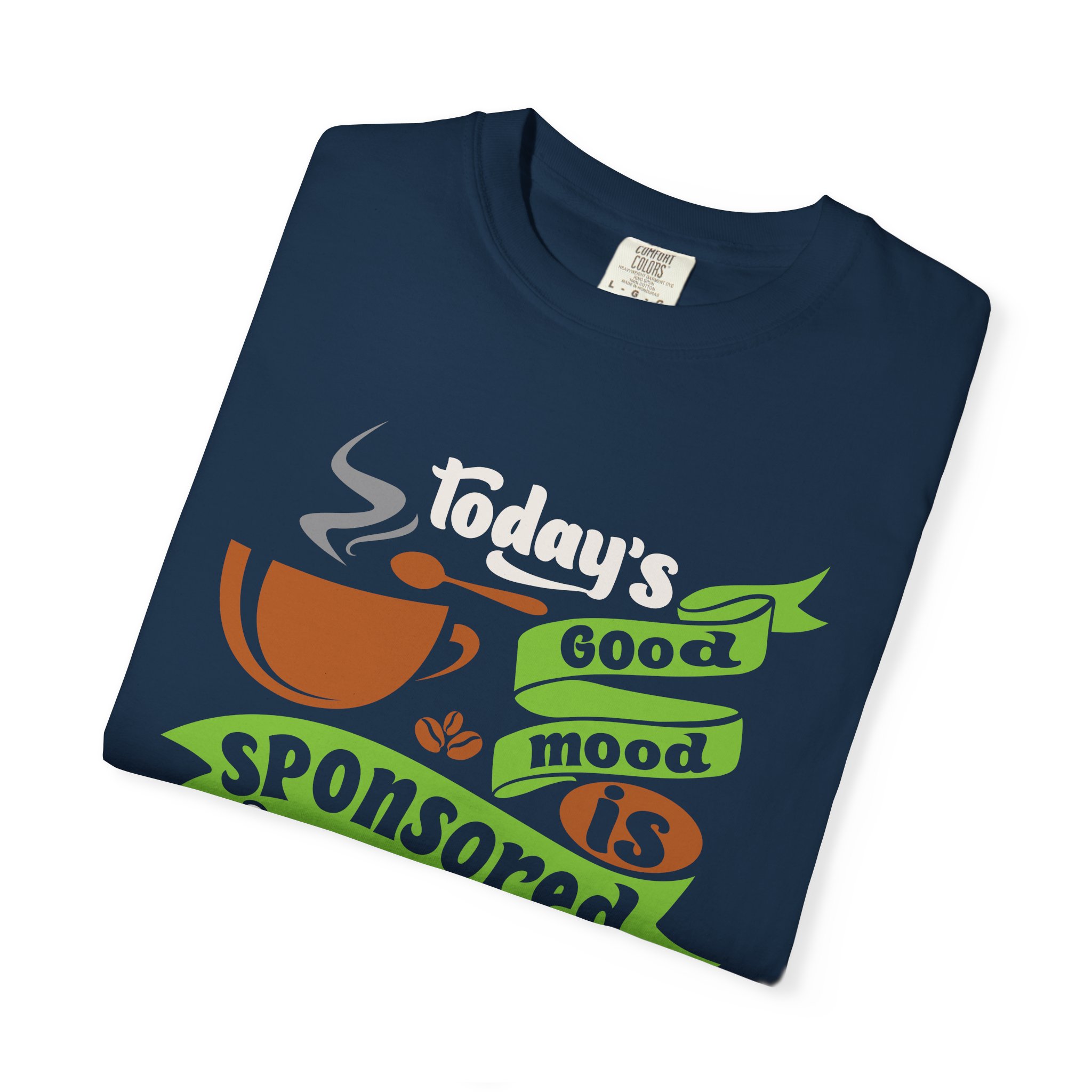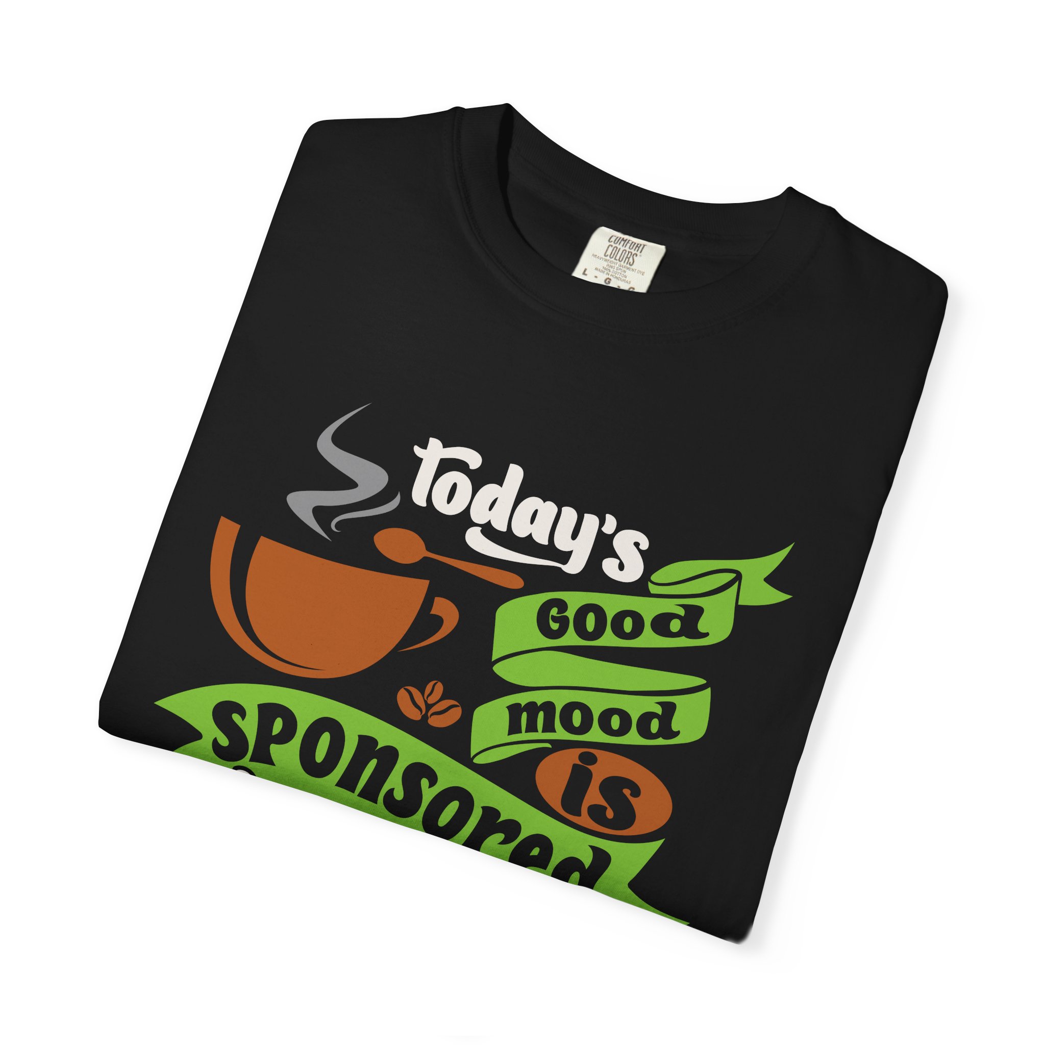 Today’s Good Mood Sponsored by Coffee T-Shirt – Positive Coffee Lover Graphic Tee for Happy Vibes & Daily Energy.