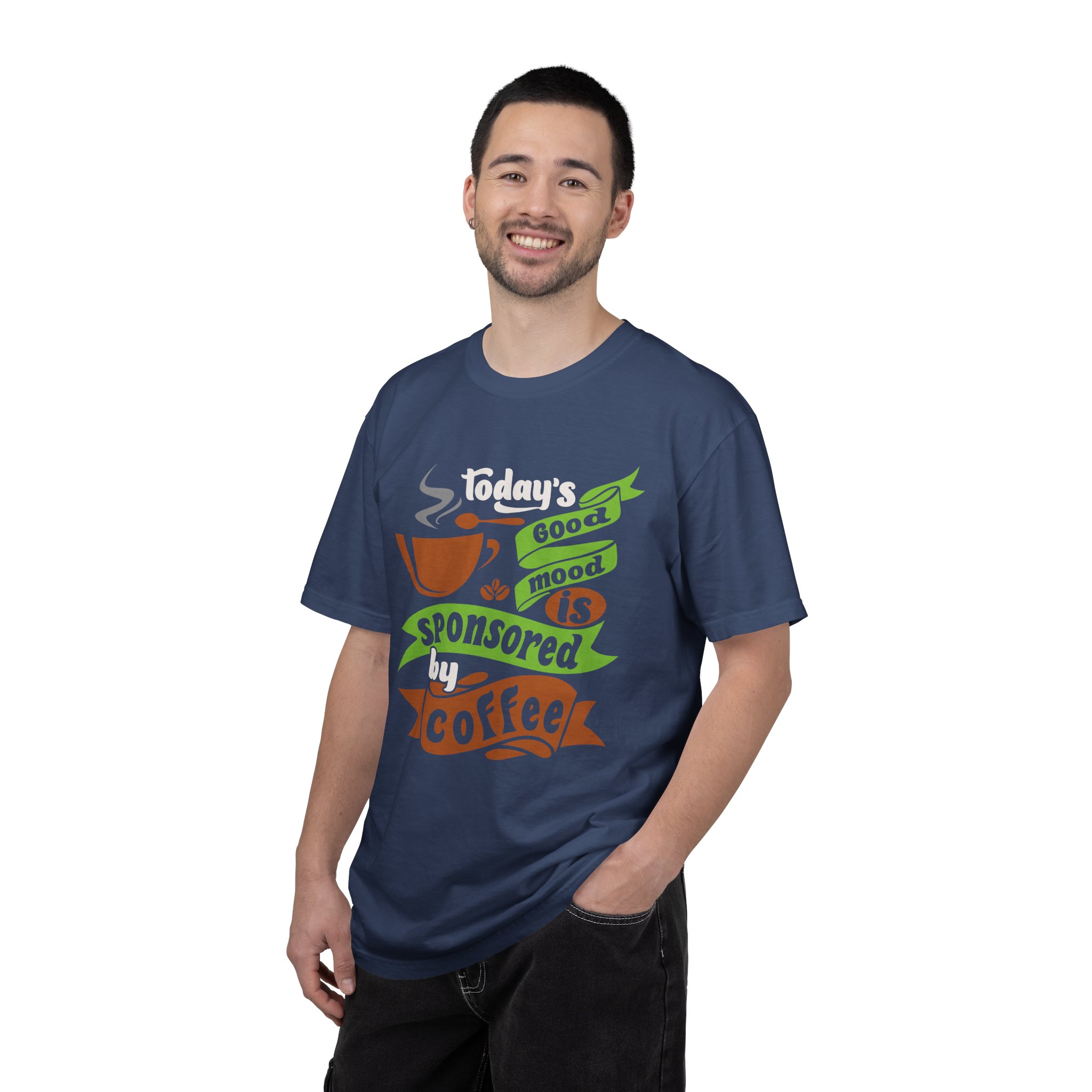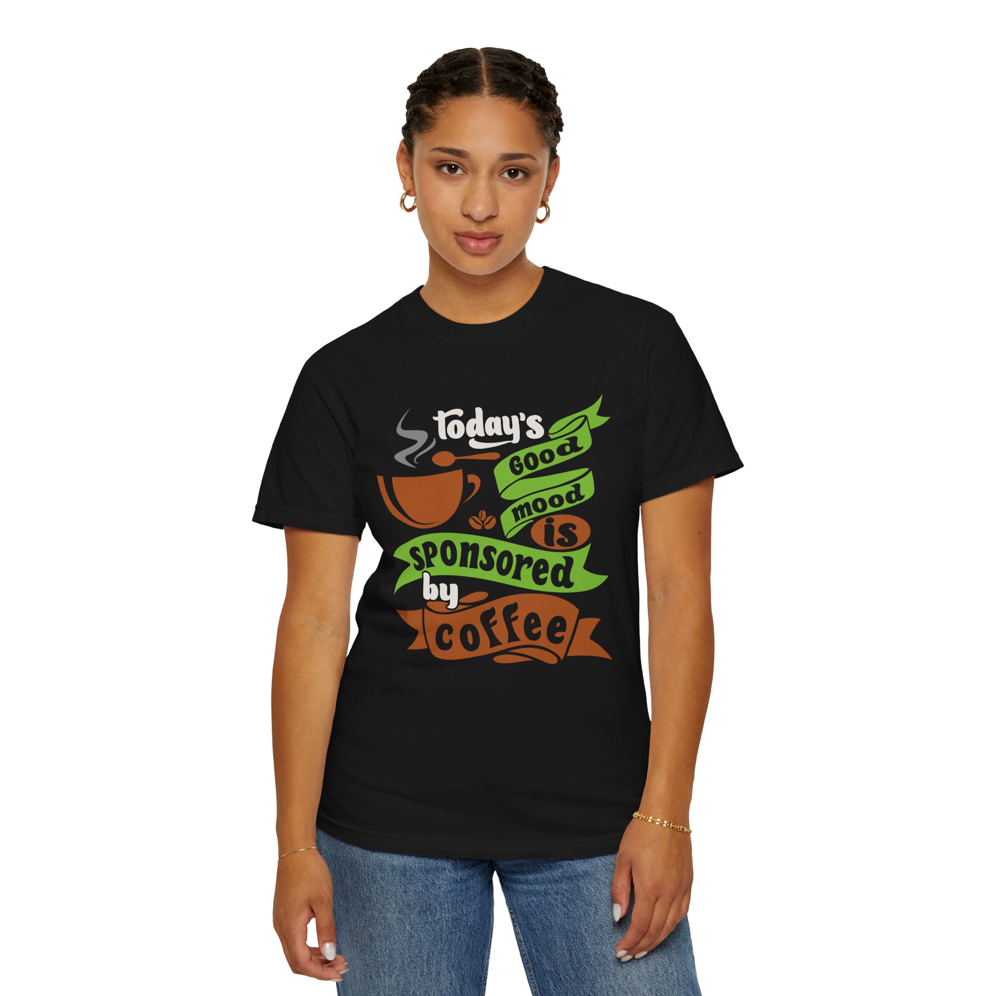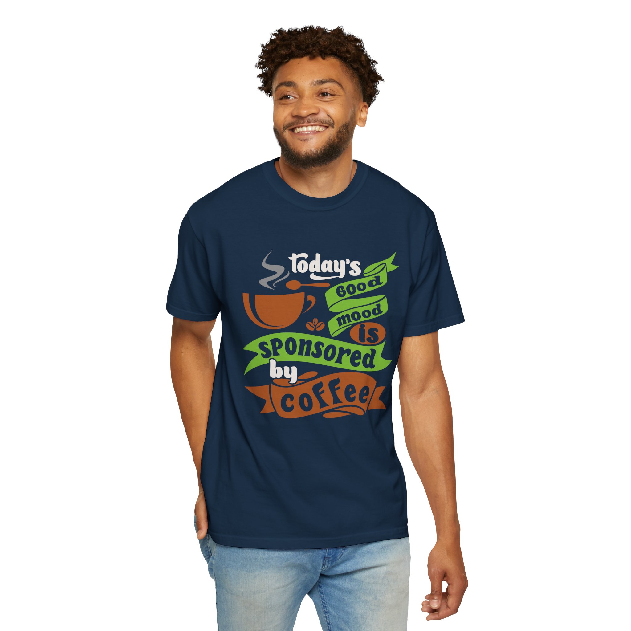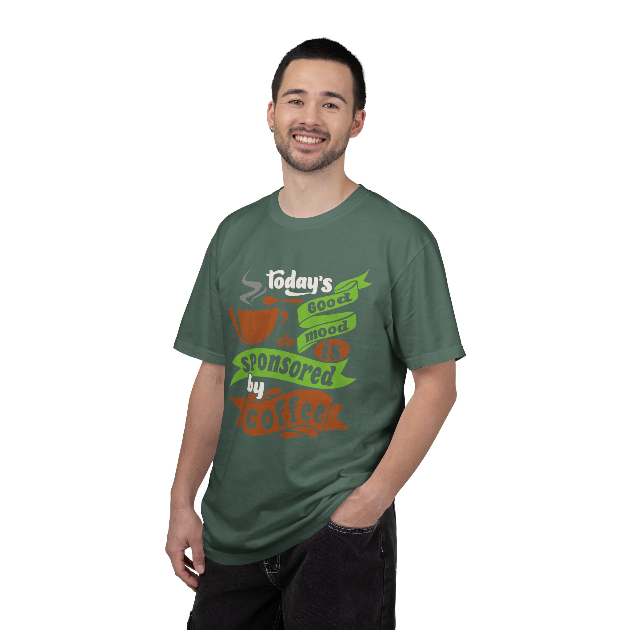 Today’s Good Mood Sponsored by Coffee T-Shirt – Positive Coffee Lover Graphic Tee for Happy Vibes & Daily Energy.