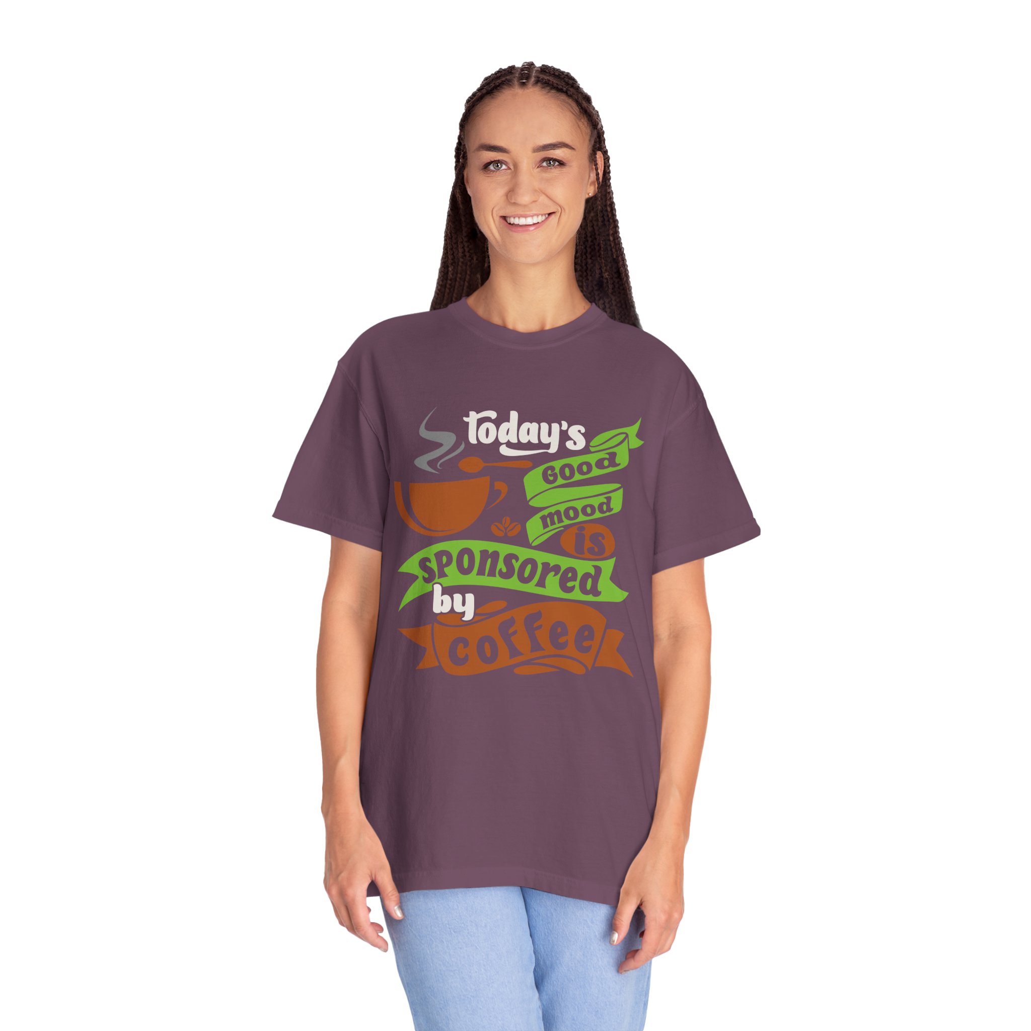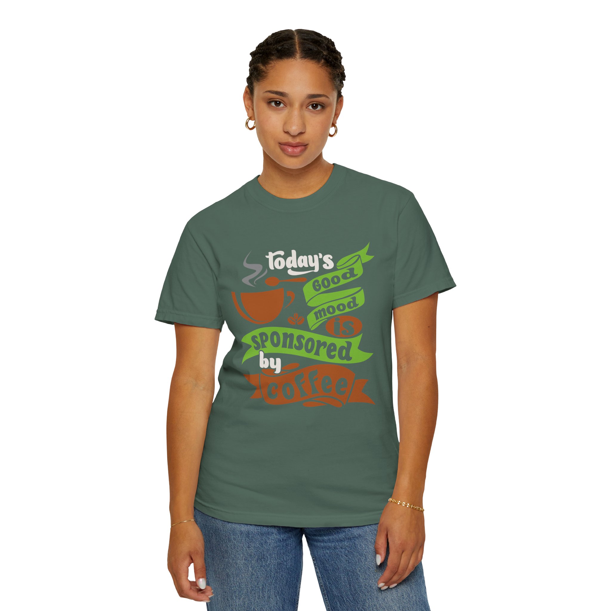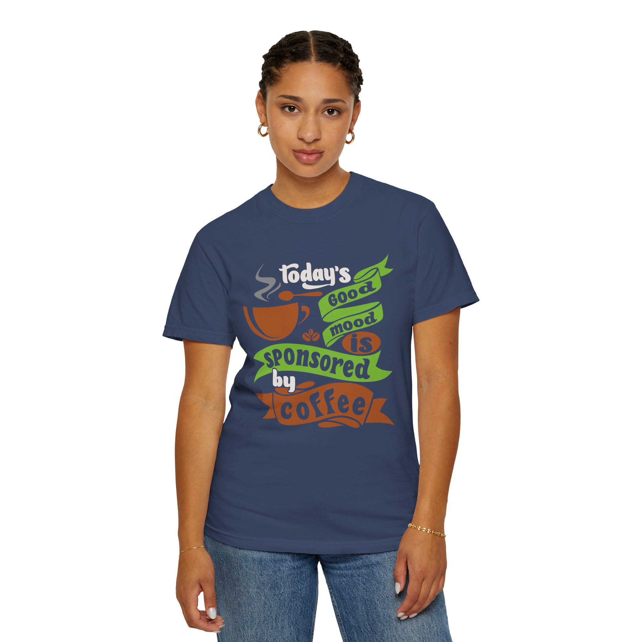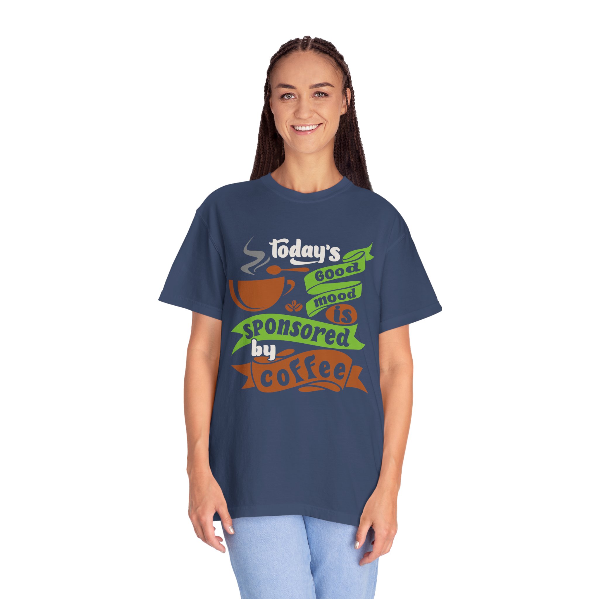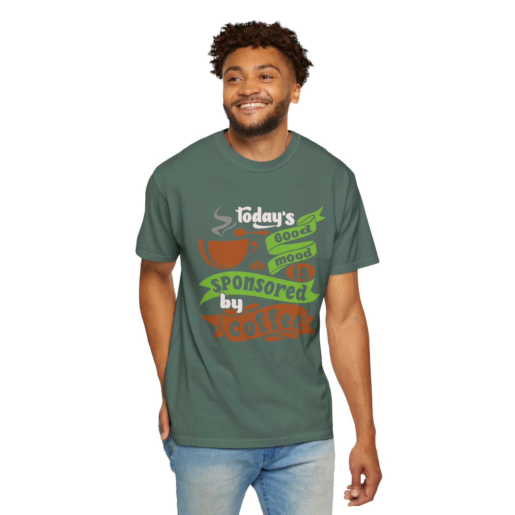 Today’s Good Mood Sponsored by Coffee T-Shirt – Positive Coffee Lover Graphic Tee for Happy Vibes & Daily Energy.