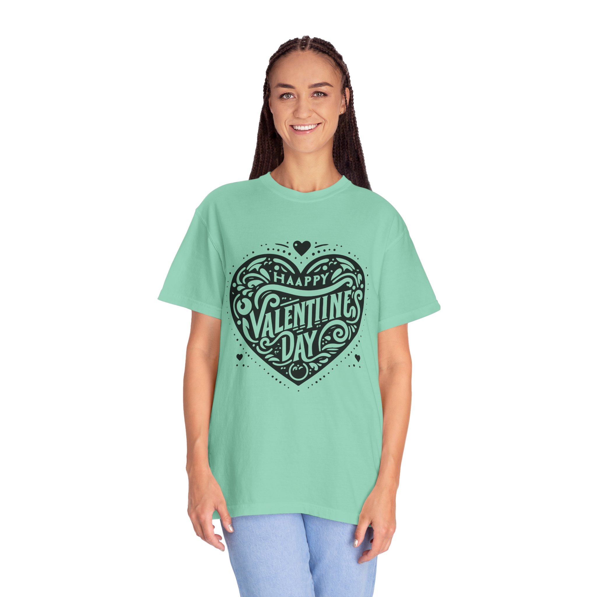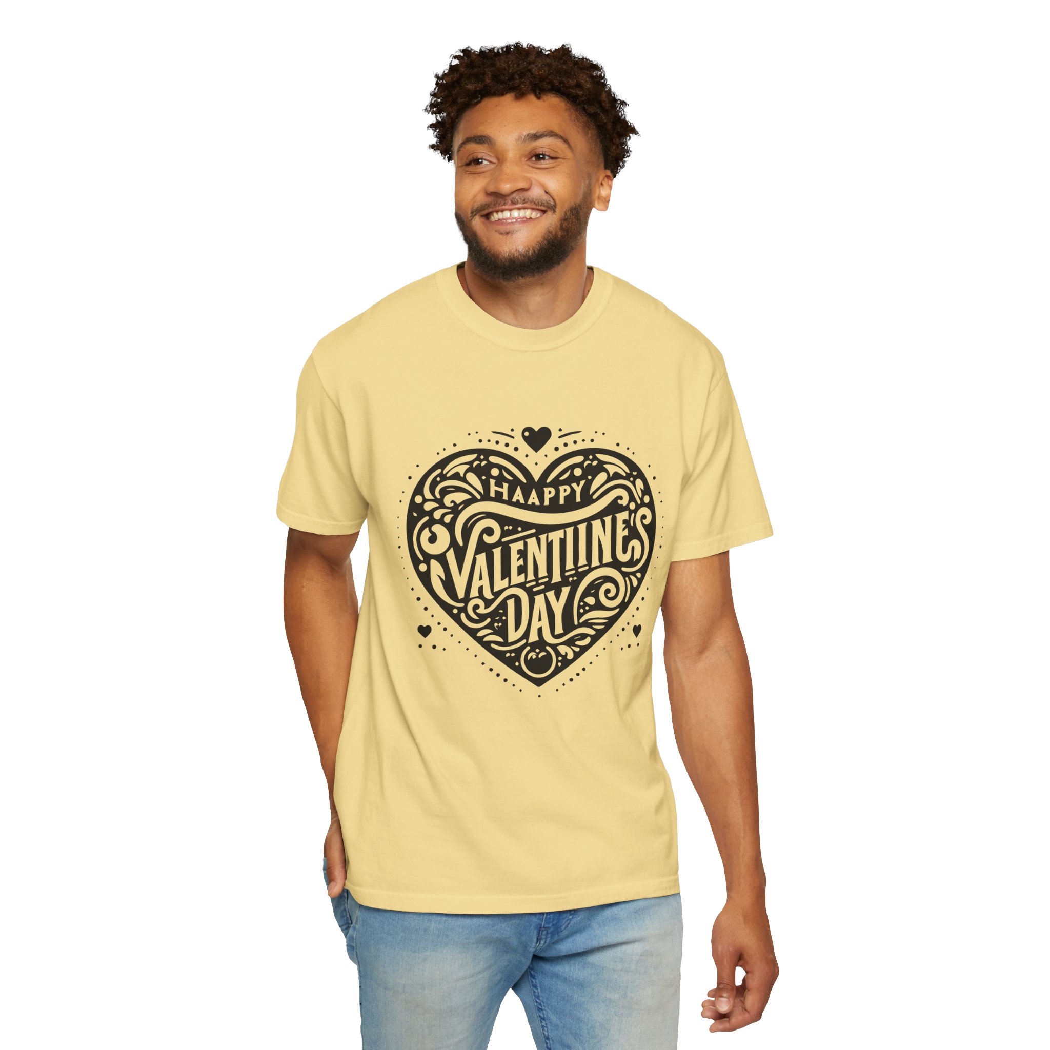 Valentine’s Day Heart T-Shirt – Unisex Garment-Dyed Tee, Lovey Dovey Gift, Cute Couple Shirt, Romantic Apparel.