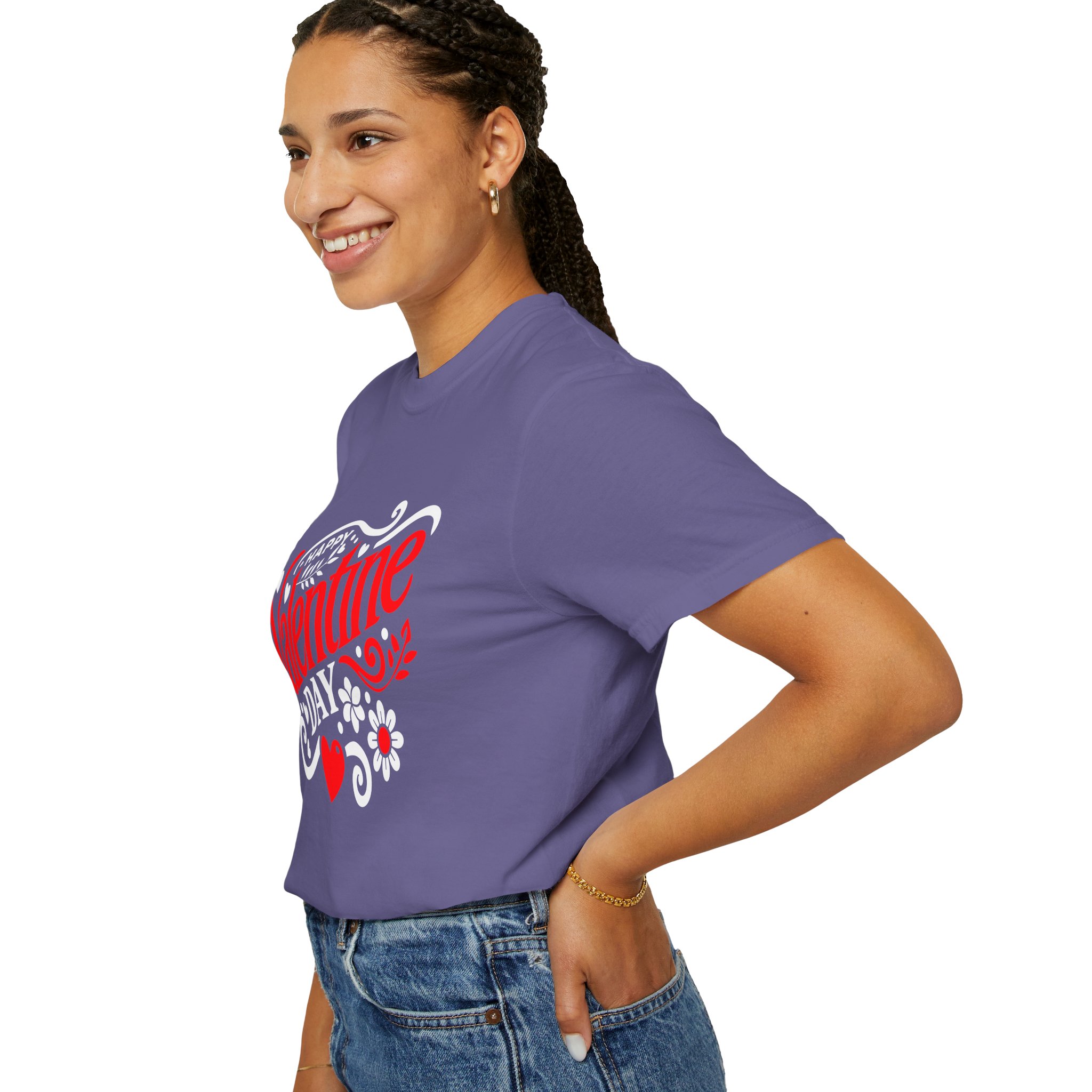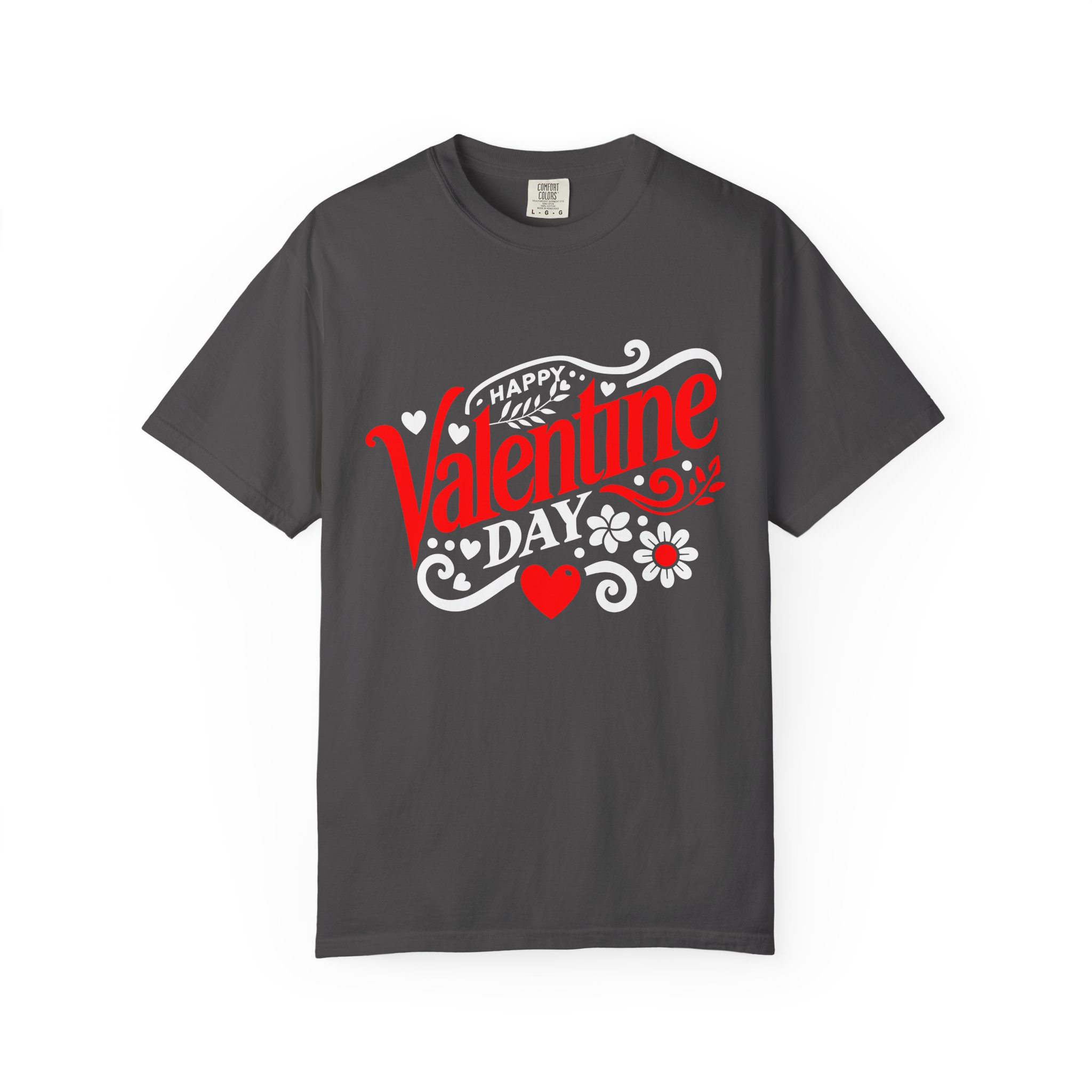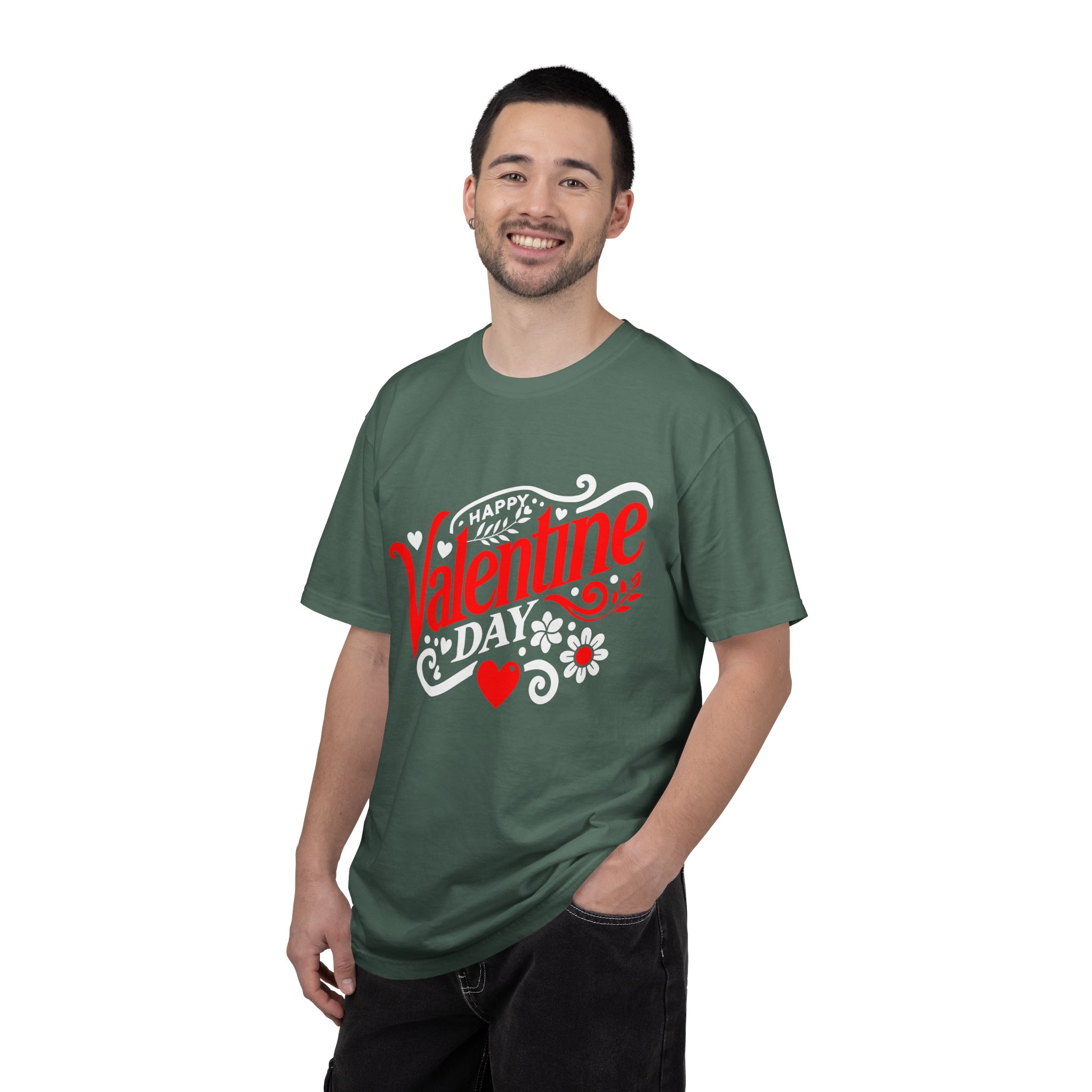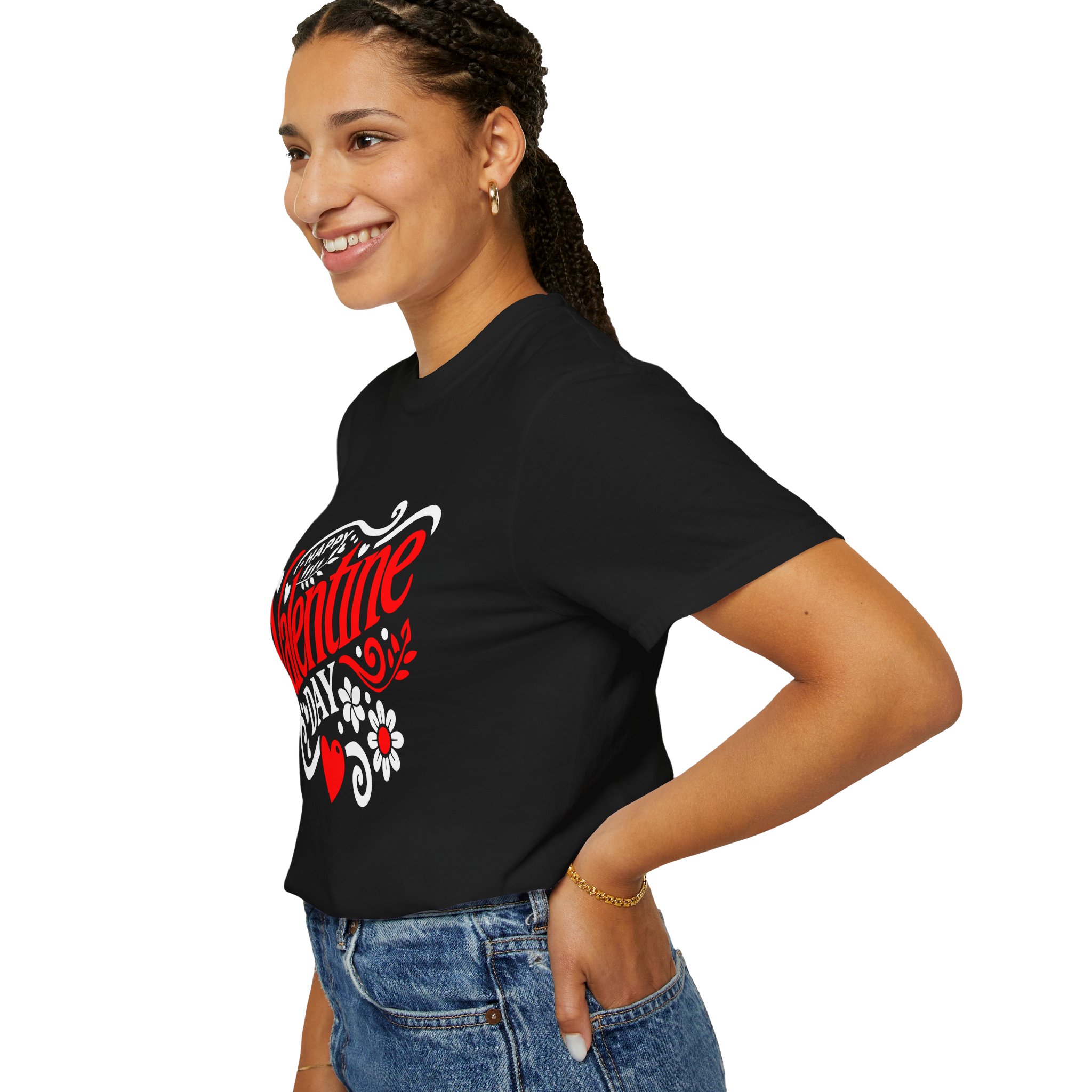 Soft, worn-in cotton that feels like a favorite right away. This relaxed-fit T-shirt carries a cheerful vintage Valentine design—swirling script, tiny hearts, and blossoms—that reads like a handwritten note. Wear it on quiet mornings with coffee or out to a low-key date night; the garment-dyed color and heavyweight knit give the shirt substance and character that only deepen after every wash. It sits comfortably loose without looking oversized, so it layers easily under a jacket or stands alone as a statement of gentle, playful affection.