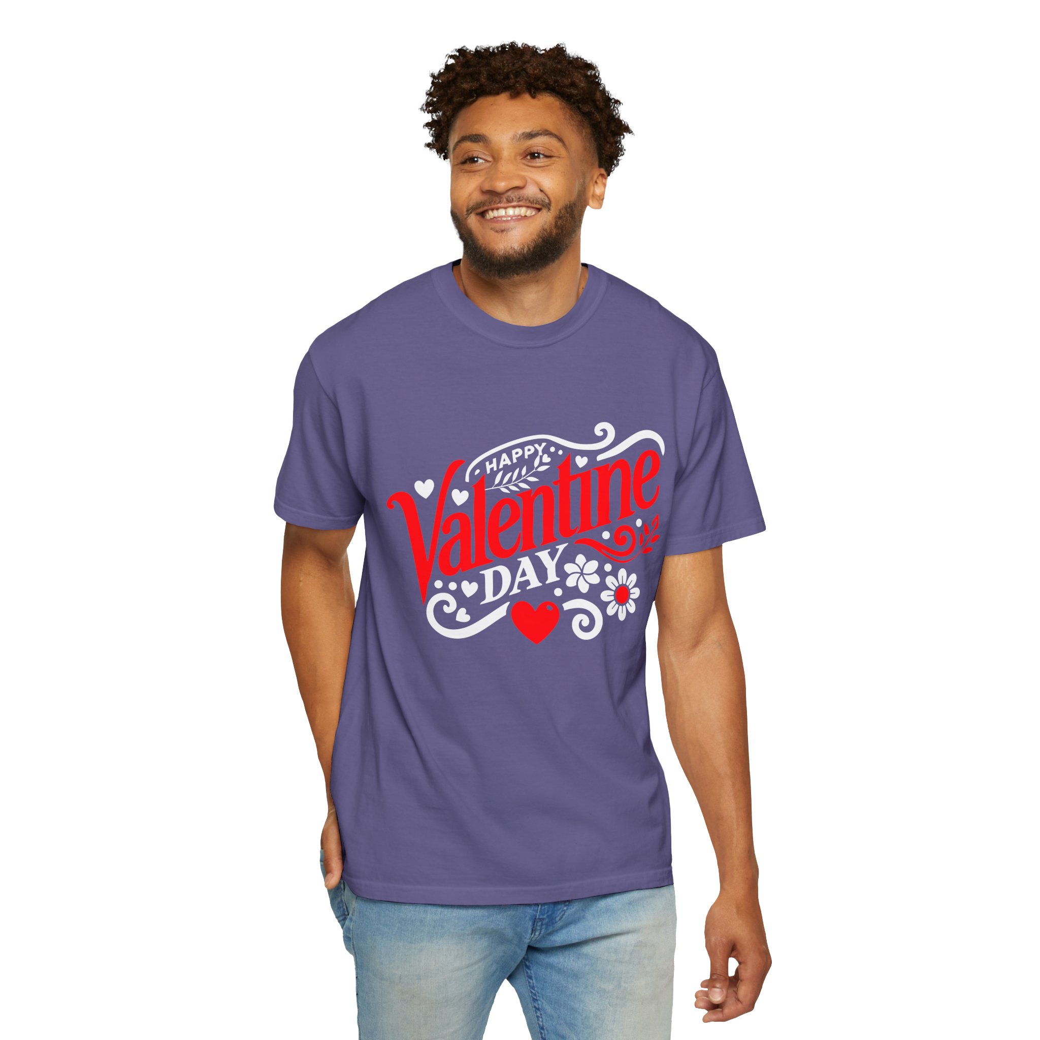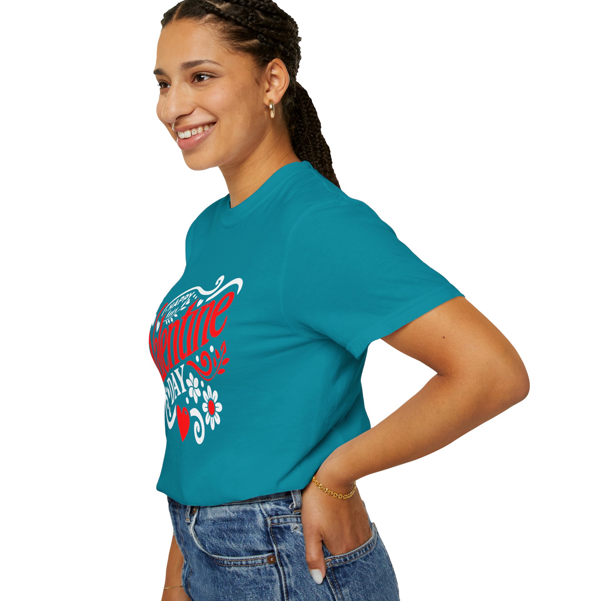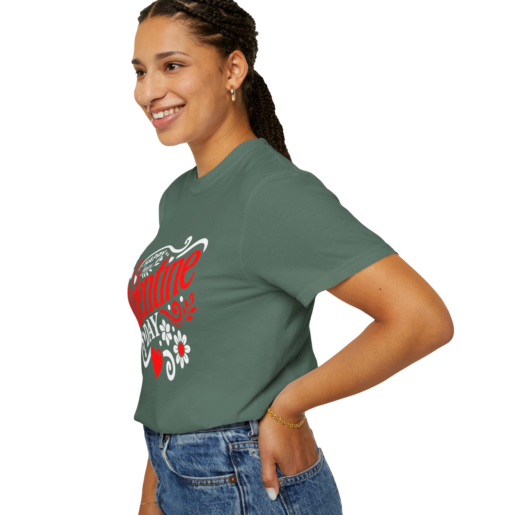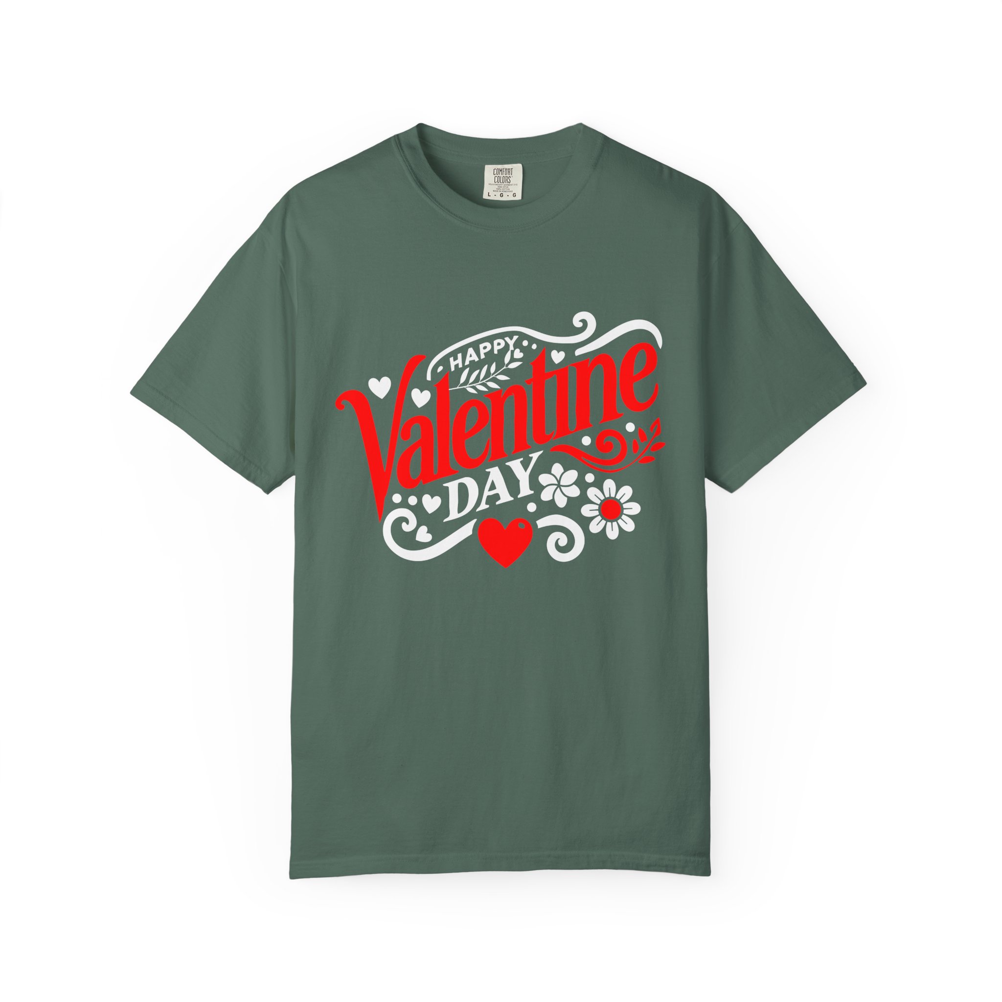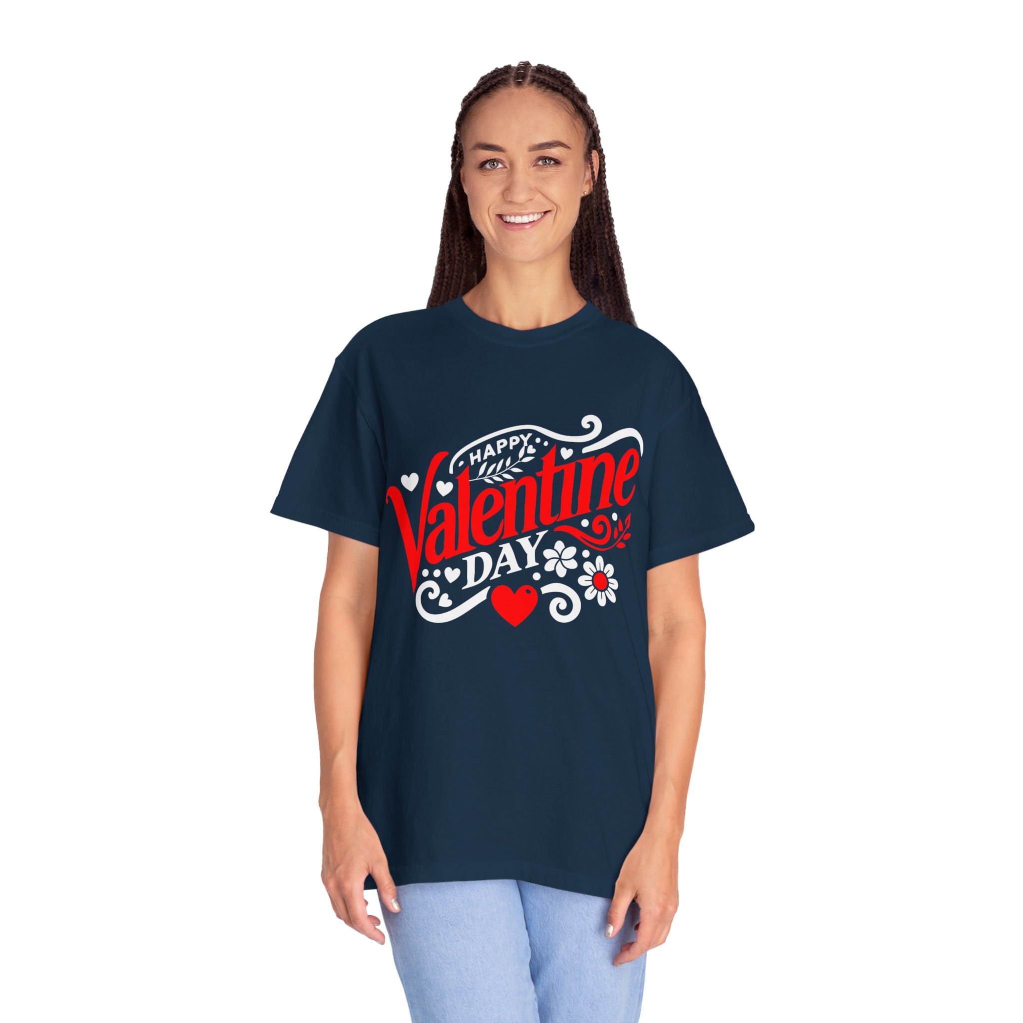 Soft, worn-in cotton that feels like a favorite right away. This relaxed-fit T-shirt carries a cheerful vintage Valentine design—swirling script, tiny hearts, and blossoms—that reads like a handwritten note. Wear it on quiet mornings with coffee or out to a low-key date night; the garment-dyed color and heavyweight knit give the shirt substance and character that only deepen after every wash. It sits comfortably loose without looking oversized, so it layers easily under a jacket or stands alone as a statement of gentle, playful affection.