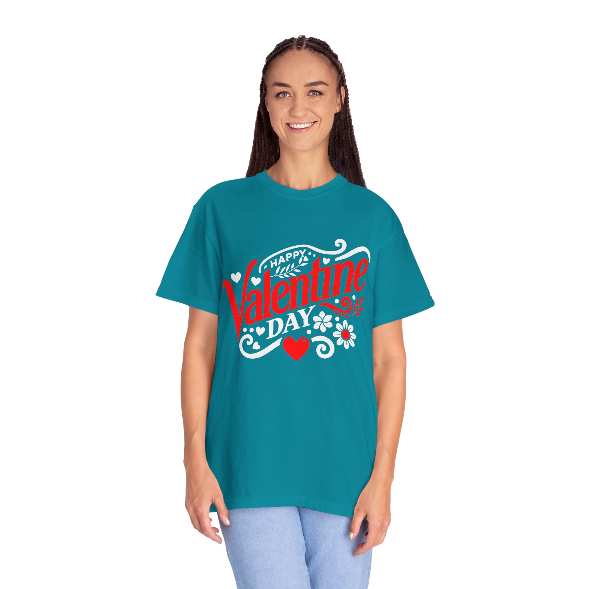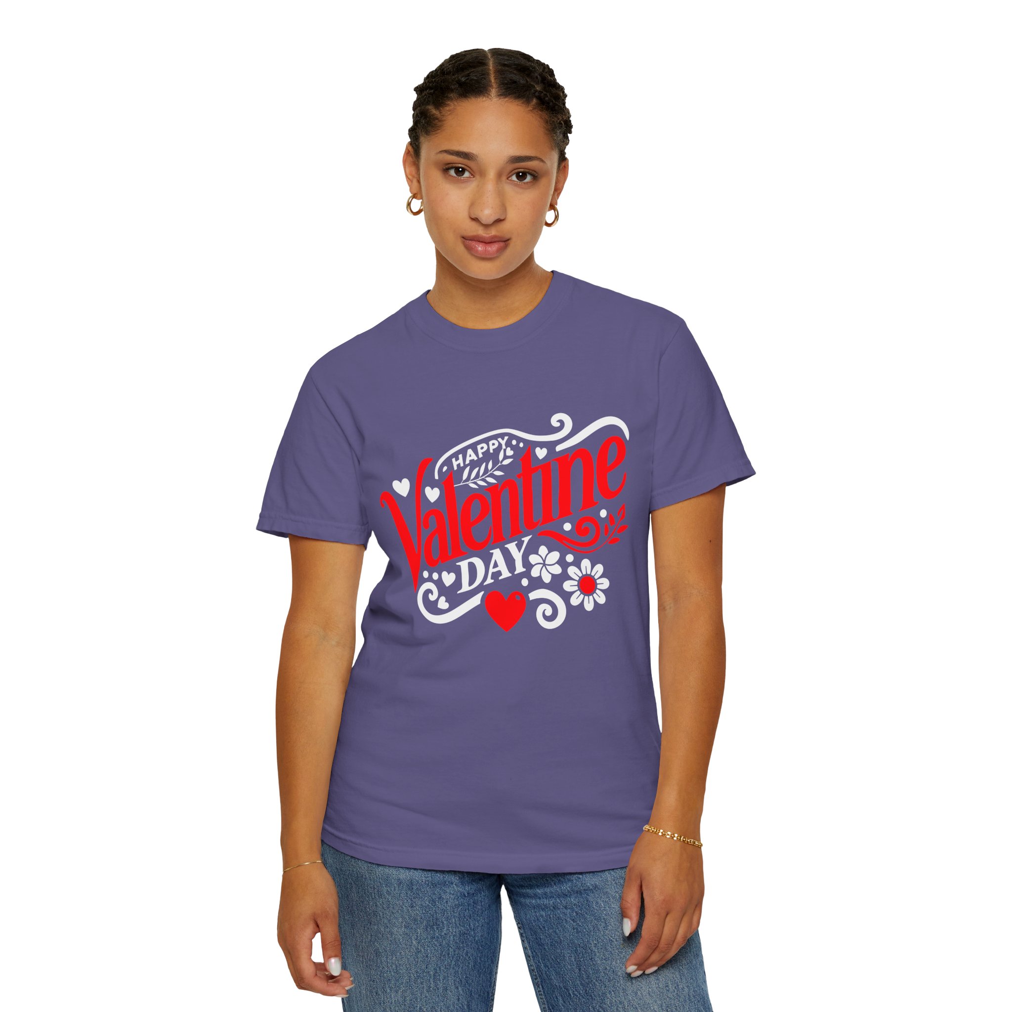 Valentine’s Day T‑Shirt – “Happy Valentine Day” Retro Floral Design.
