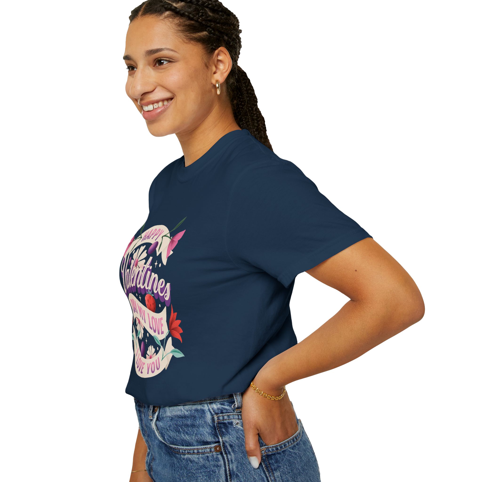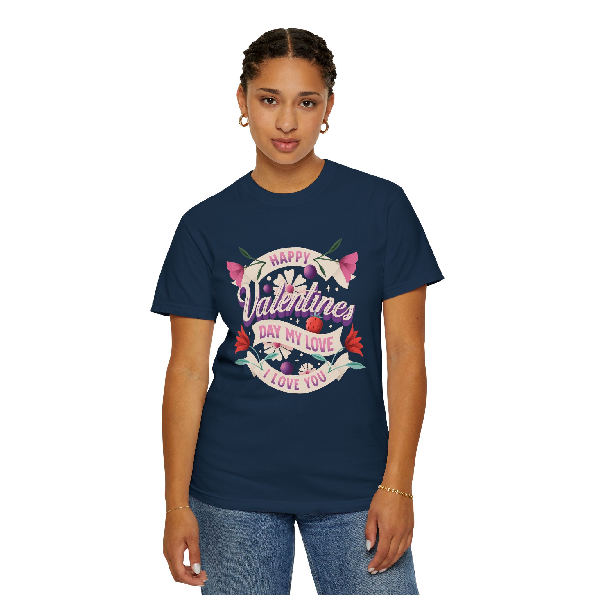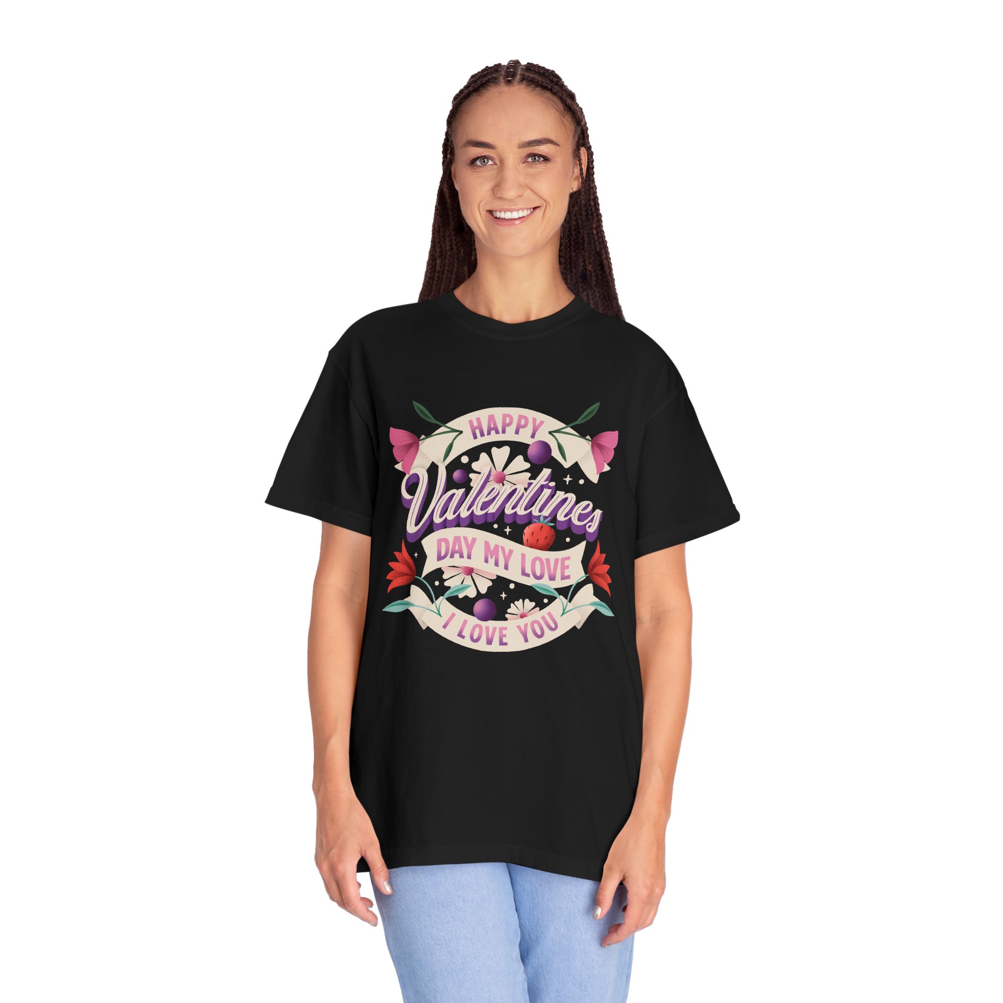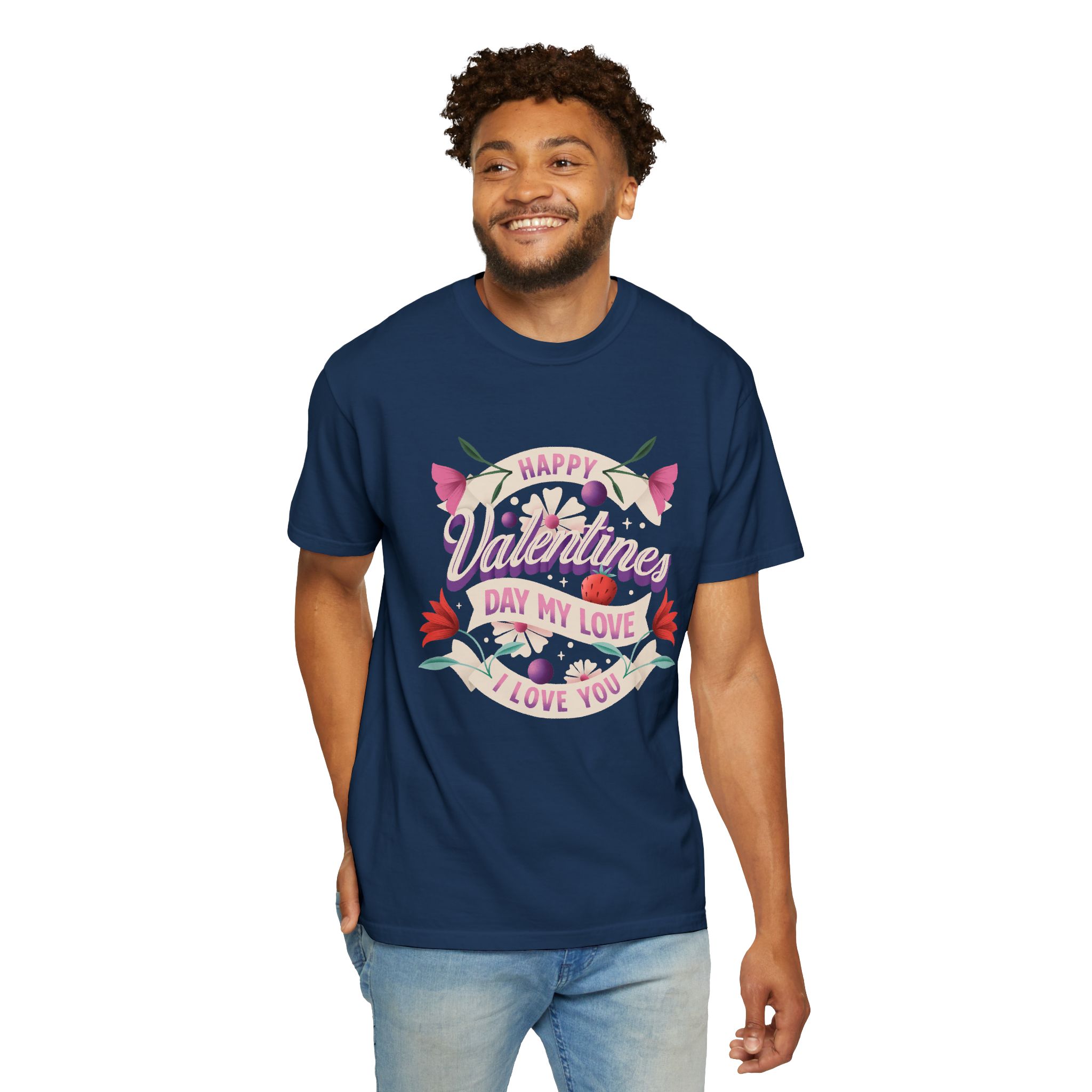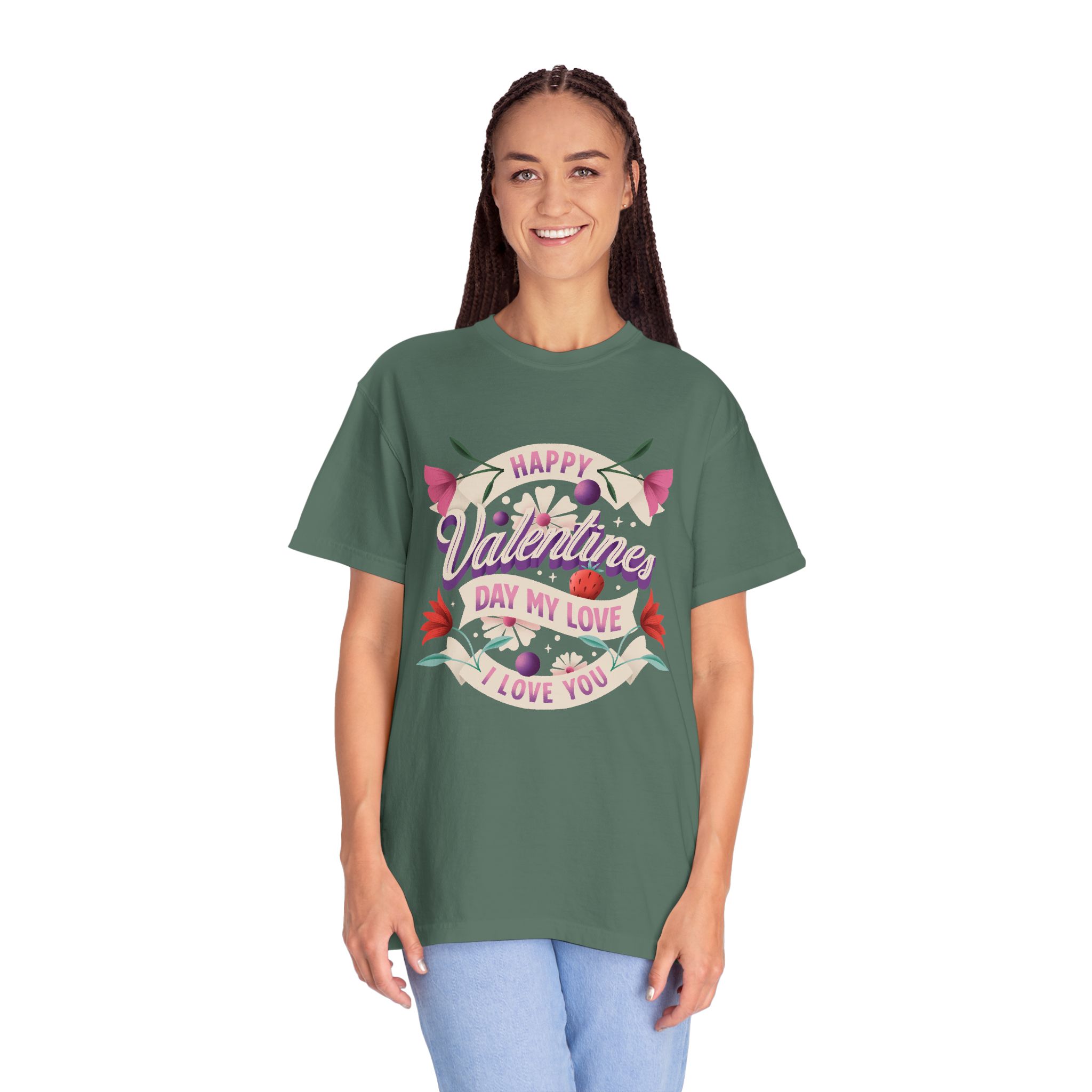 Valentine’s Day Unisex T-Shirt, Cute Love Shirt, Garment Dyed Tee, Valentine’s Gift, Couple’s Apparel, Floral Design