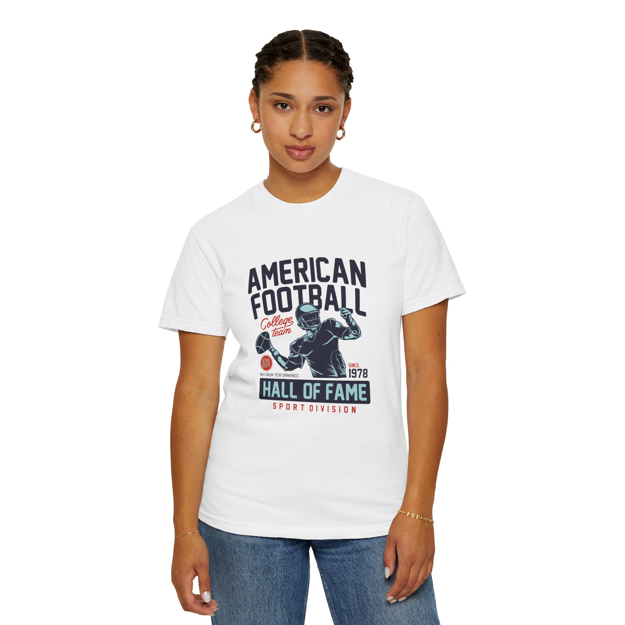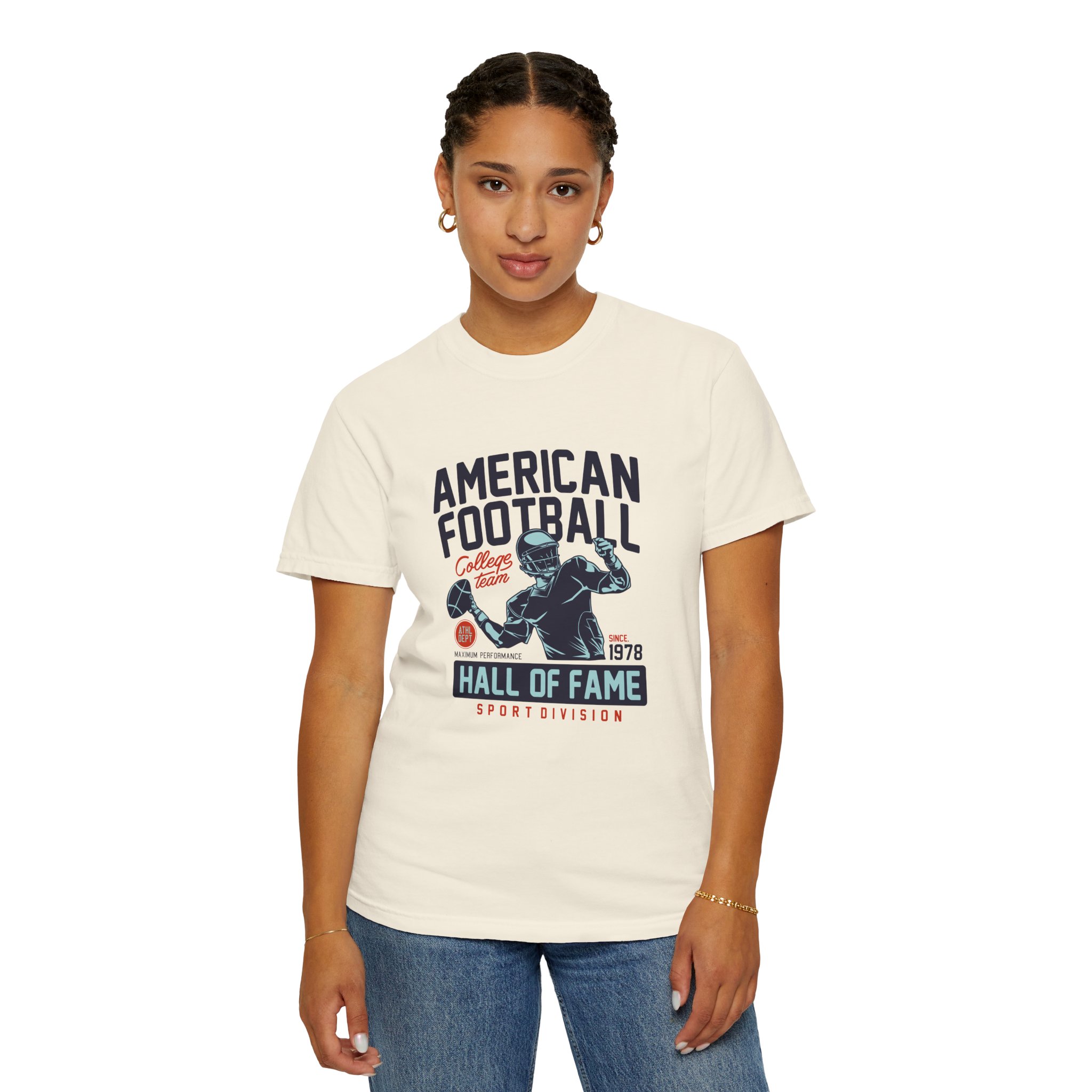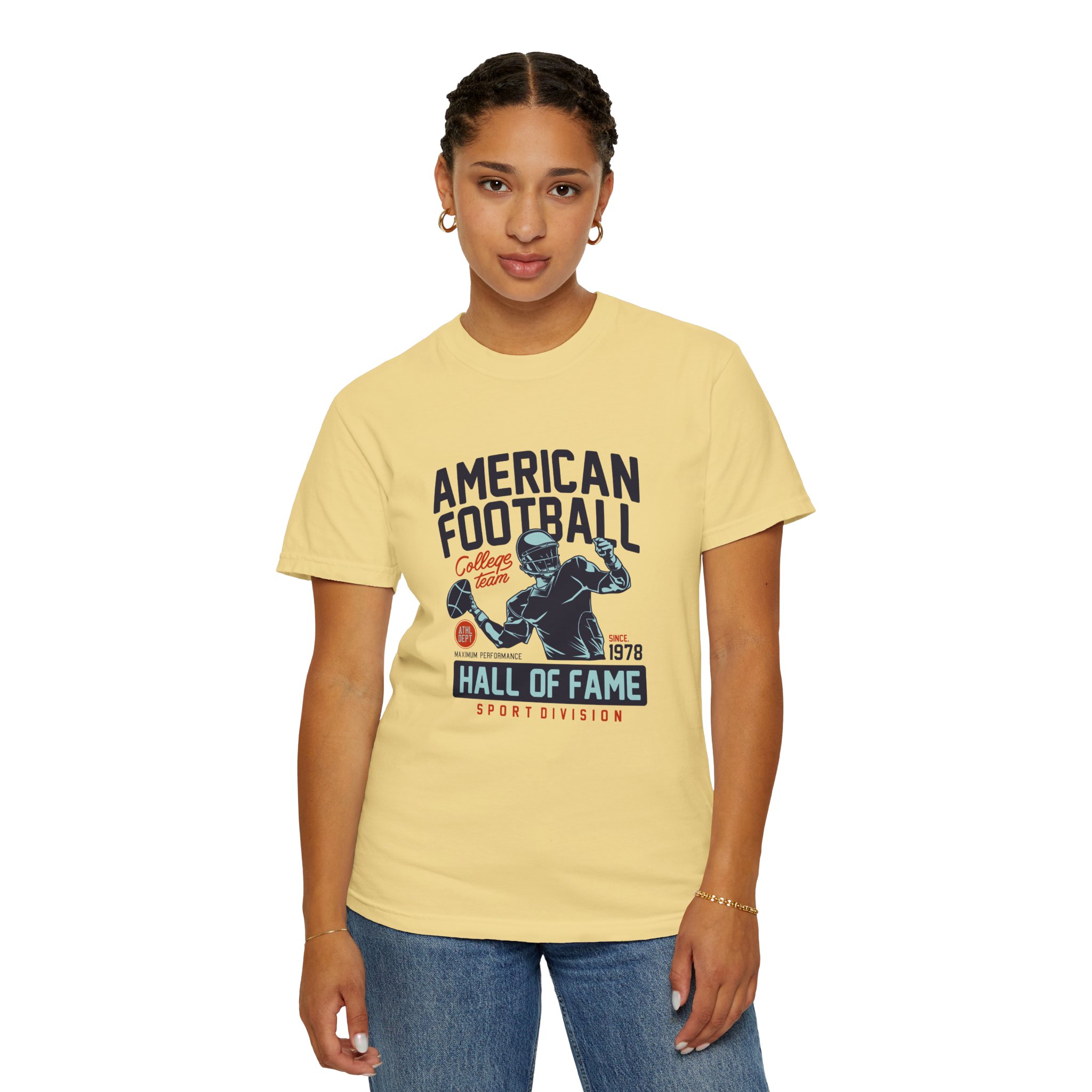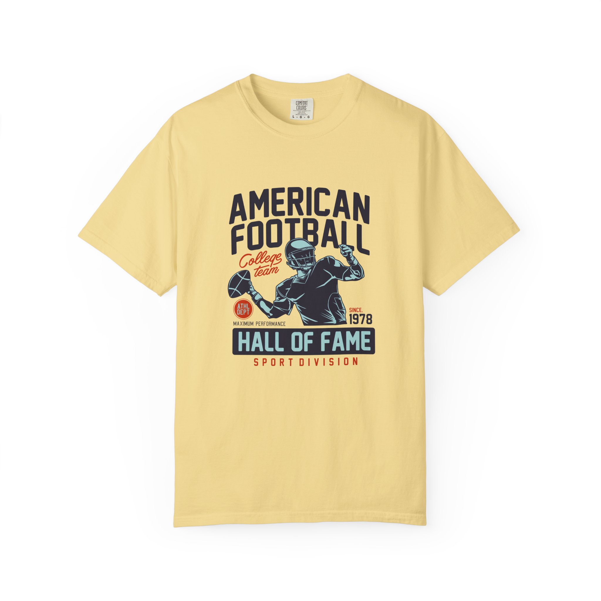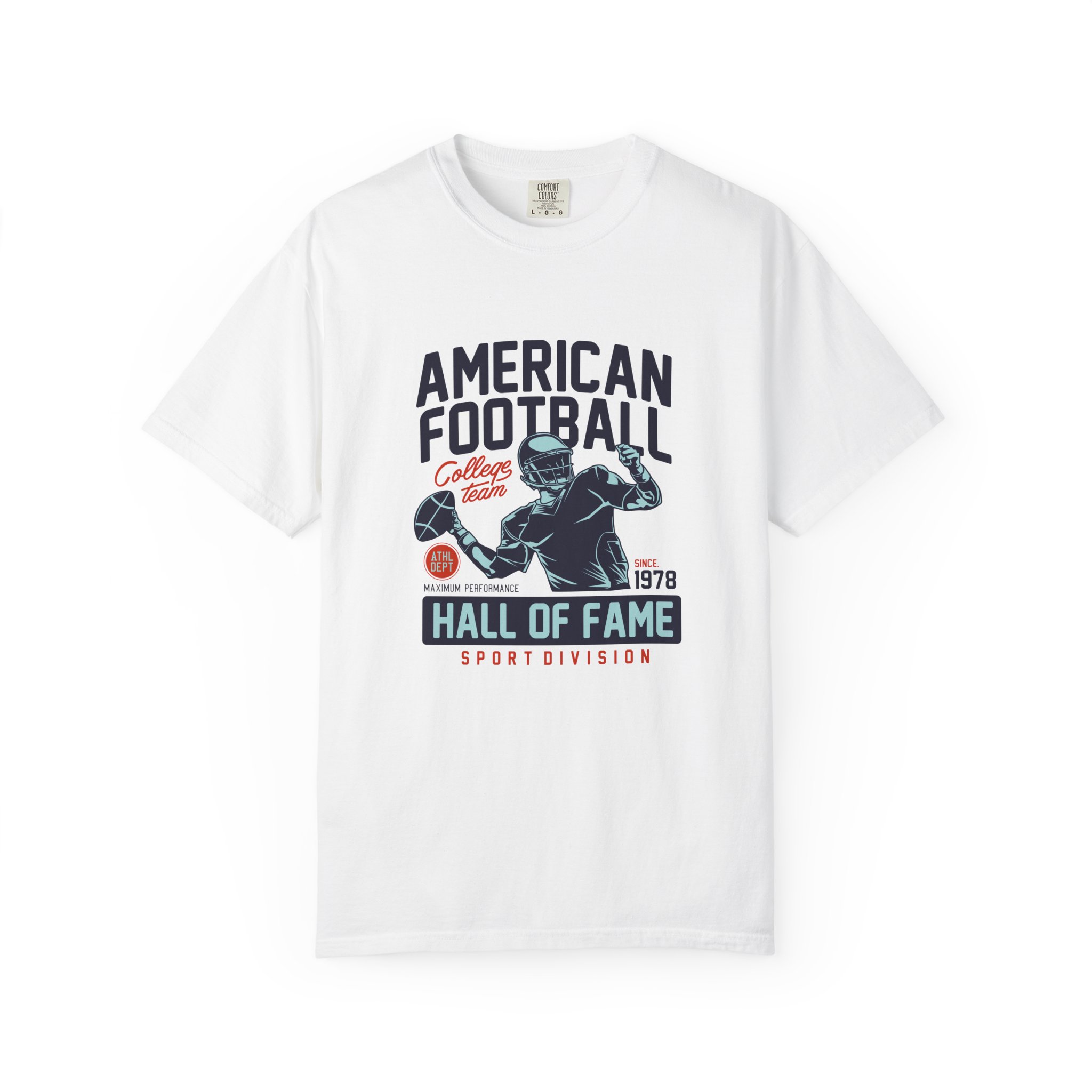 Vintage American Football T-Shirt, Casual Sports Tee, Unisex College Team Apparel, Gift for Football Fans, Hall of Fame Inspired Shirt.