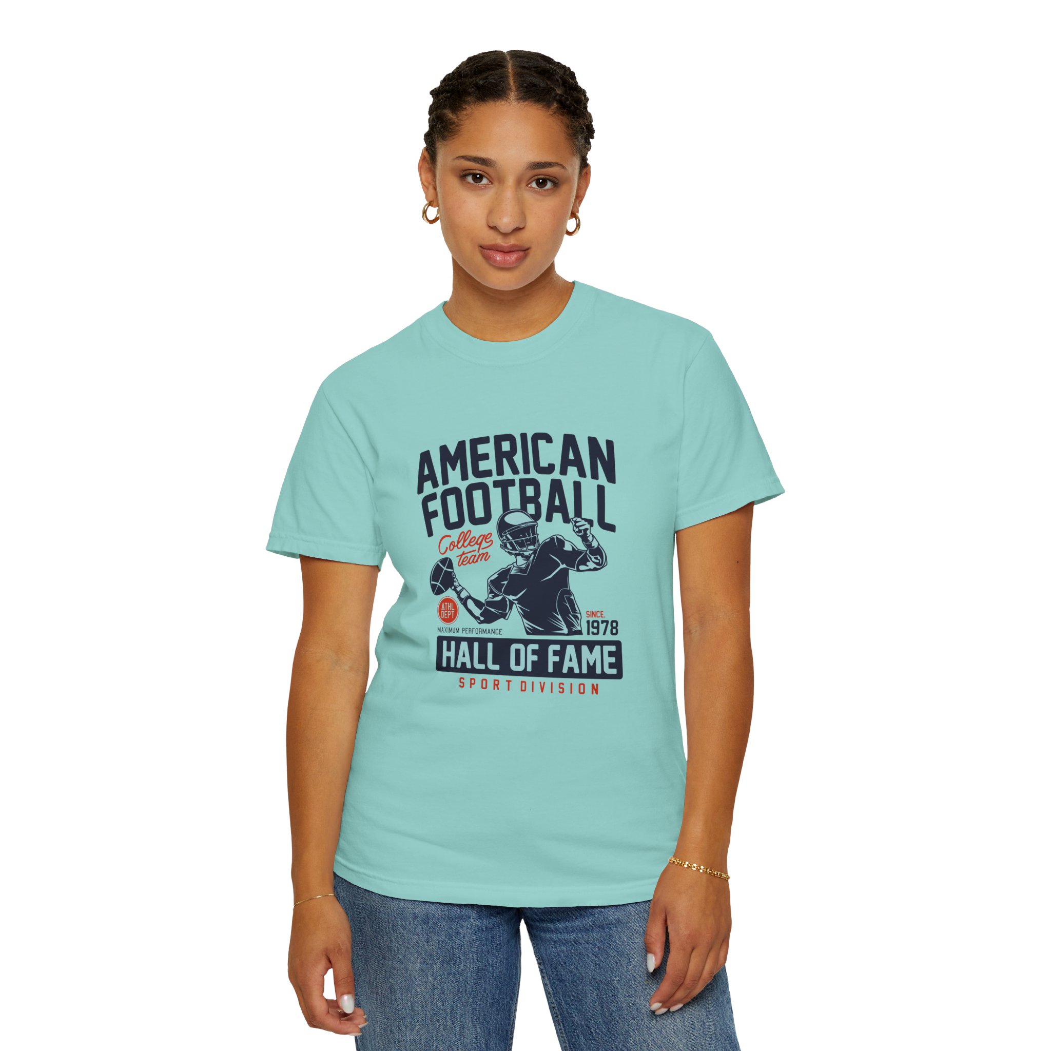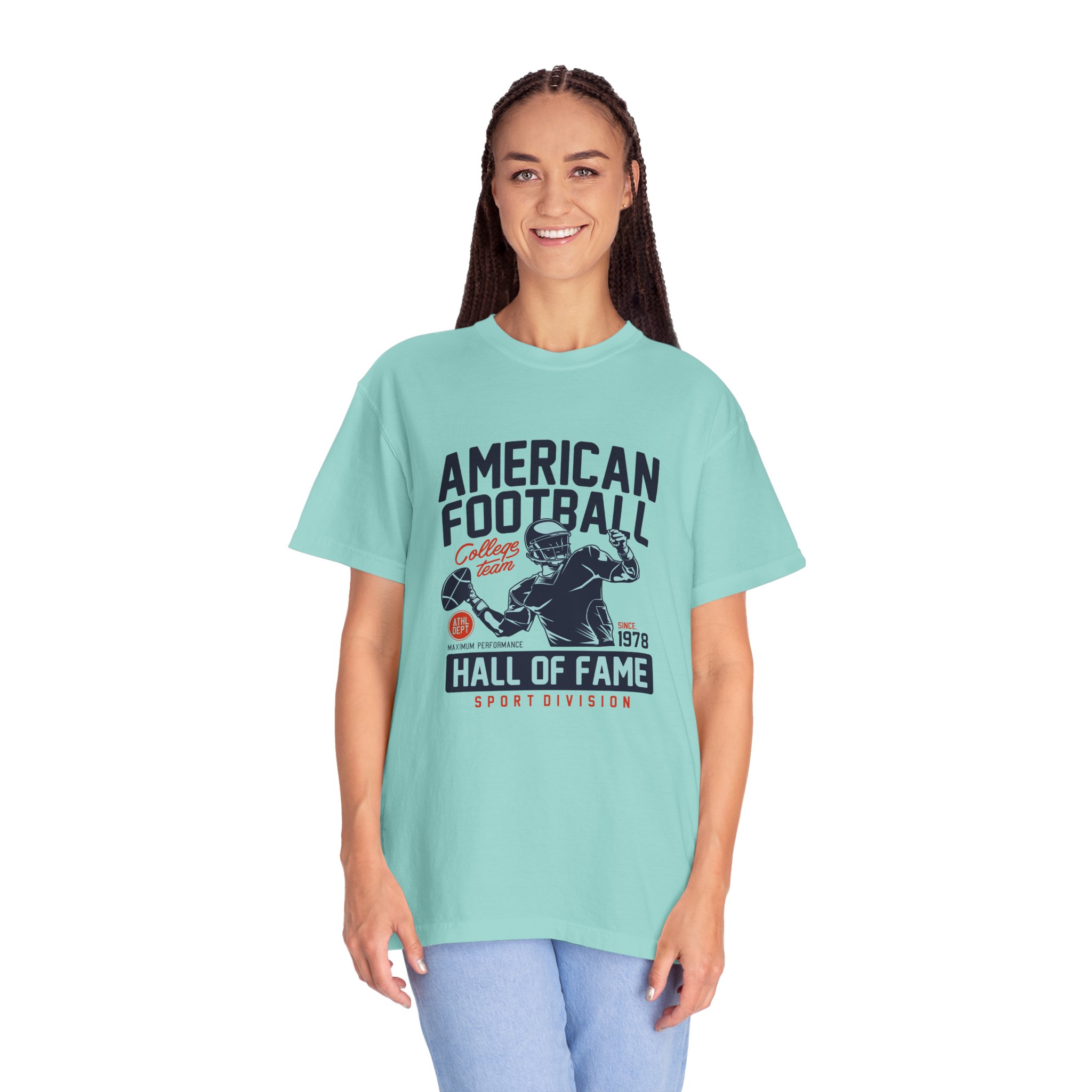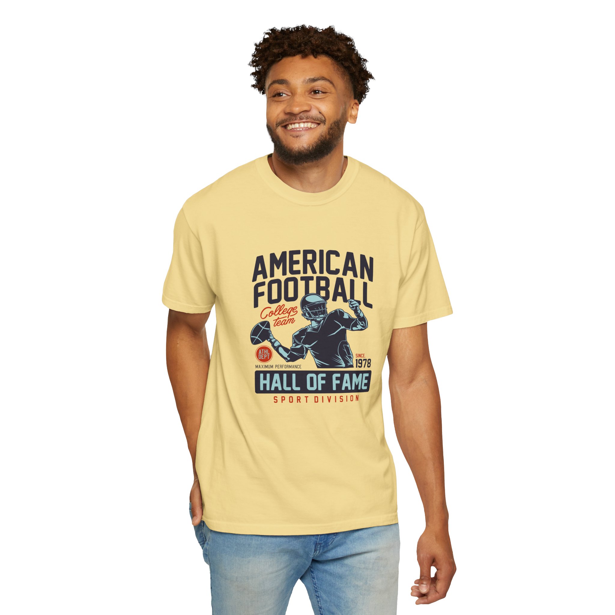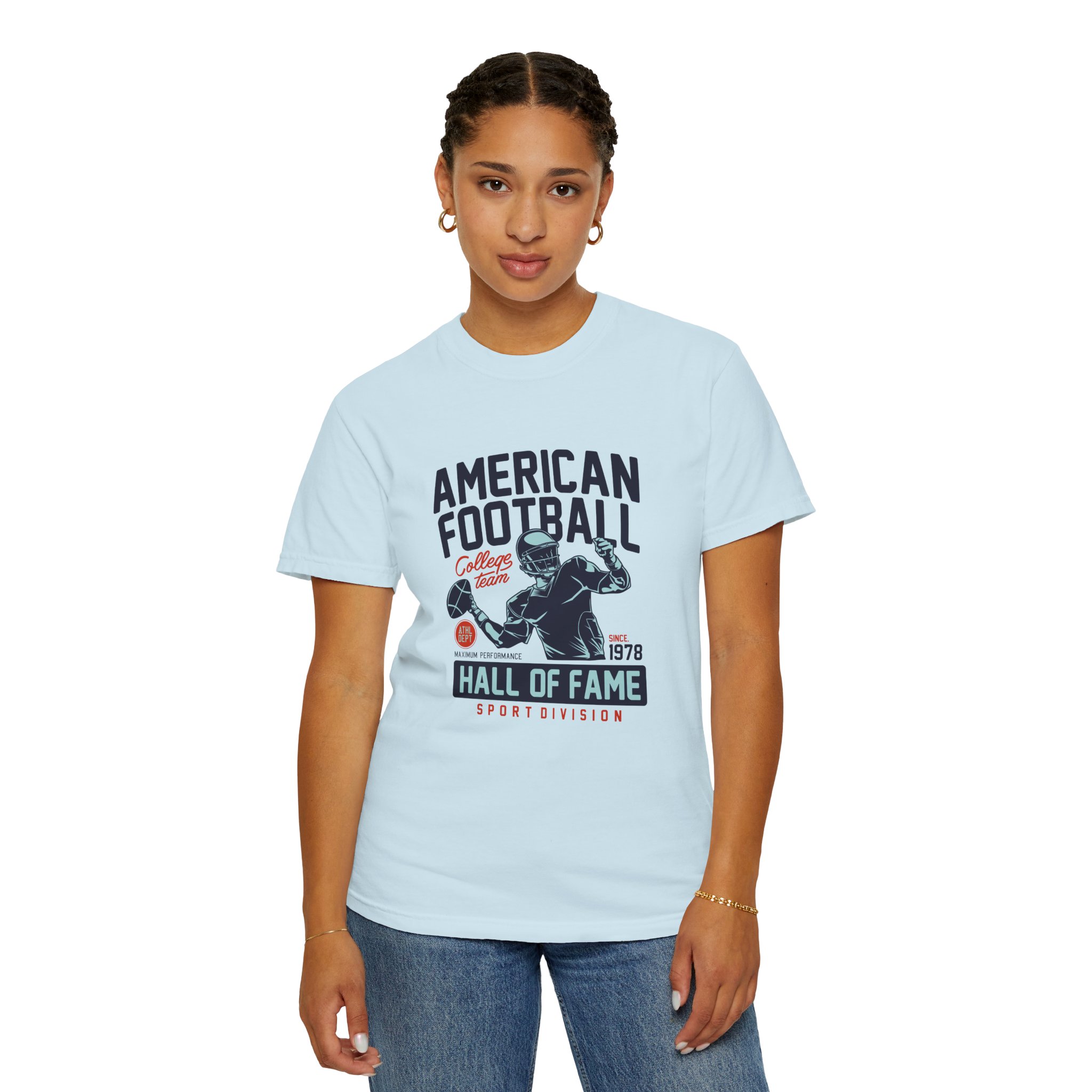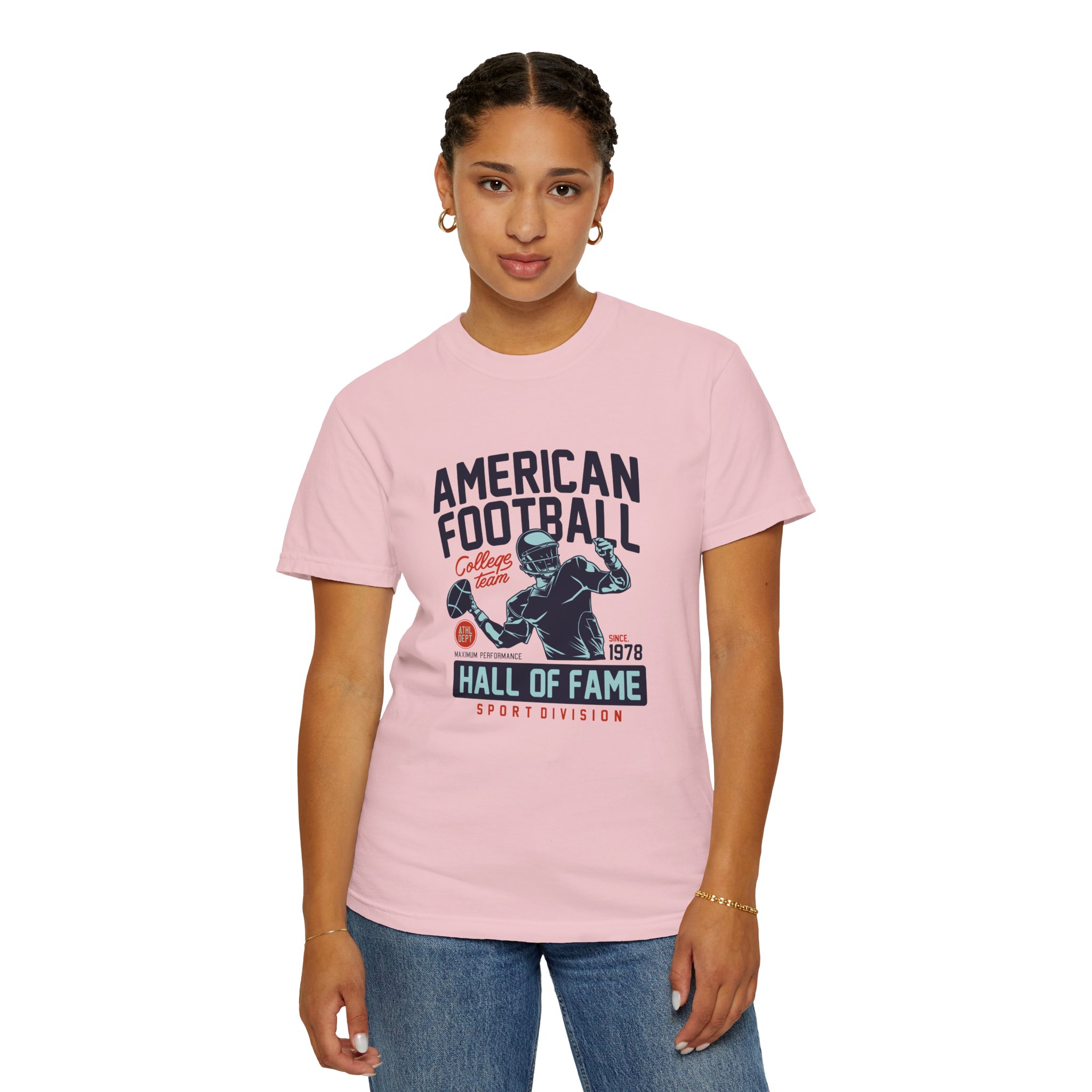 Vintage American Football T-Shirt, Casual Sports Tee, Unisex College Team Apparel, Gift for Football Fans, Hall of Fame Inspired Shirt.