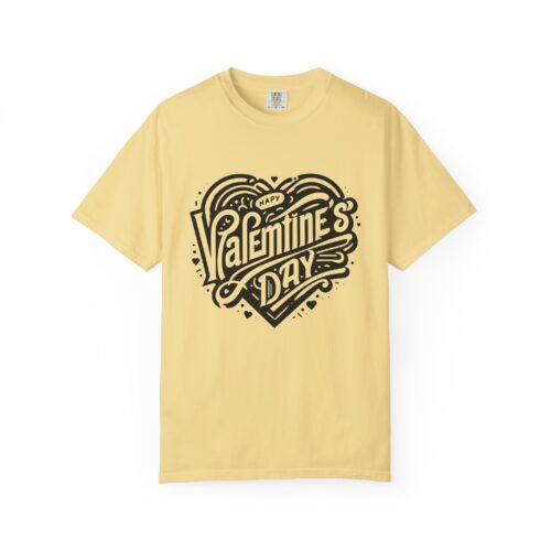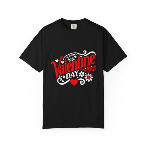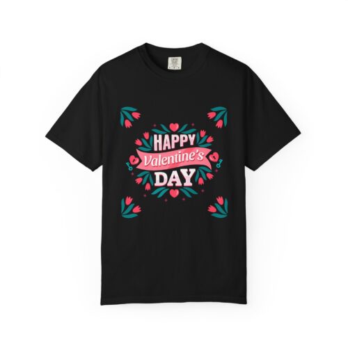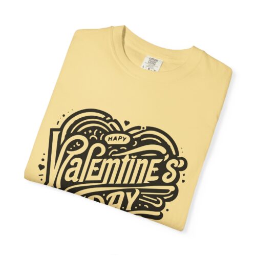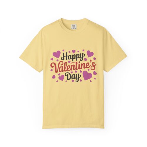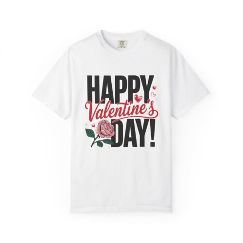 Happy Valentine’s Day Garment-Dyed Unisex T-shirt, Romantic Gift, Couple’s T-shirt, Valentine’s Apparel, Love Shirt.