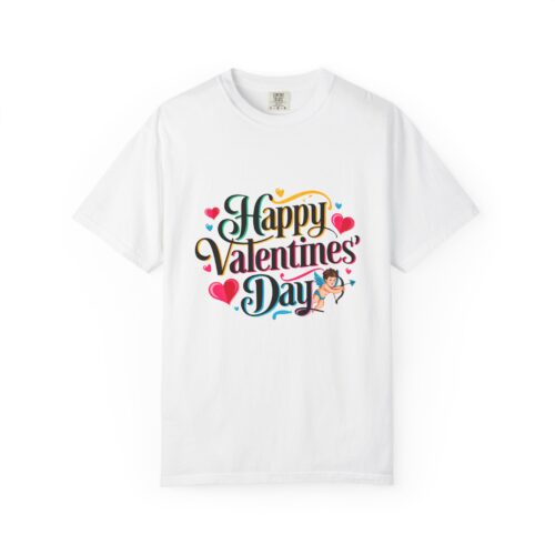 Happy Valentine’s Day Unisex T-shirt, Garment-Dyed Tee for Couples, Love-themed Apparel, Gift Cute Holiday Shirt