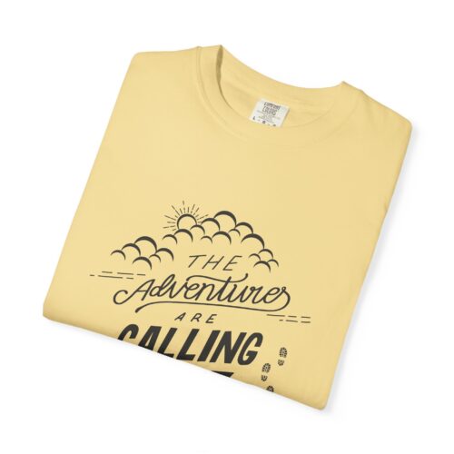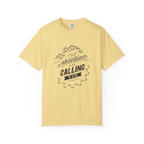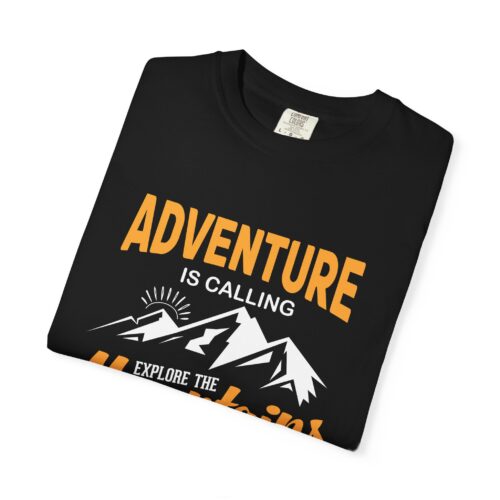 Adventure Calling T-Shirt, Unisex Garment-Dyed Tee, Mountain Exploration Shirt, Outdoor Adventure Apparel, Travel Gift.