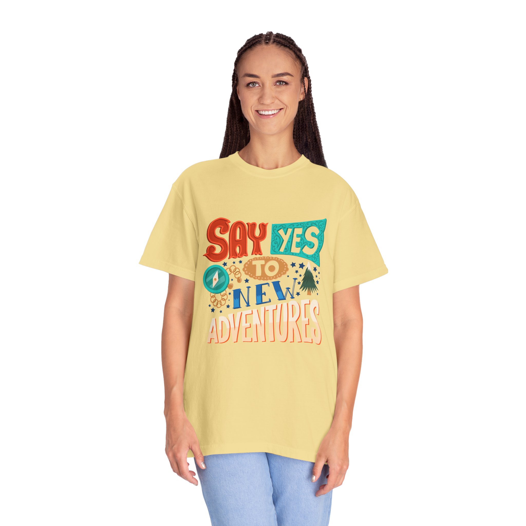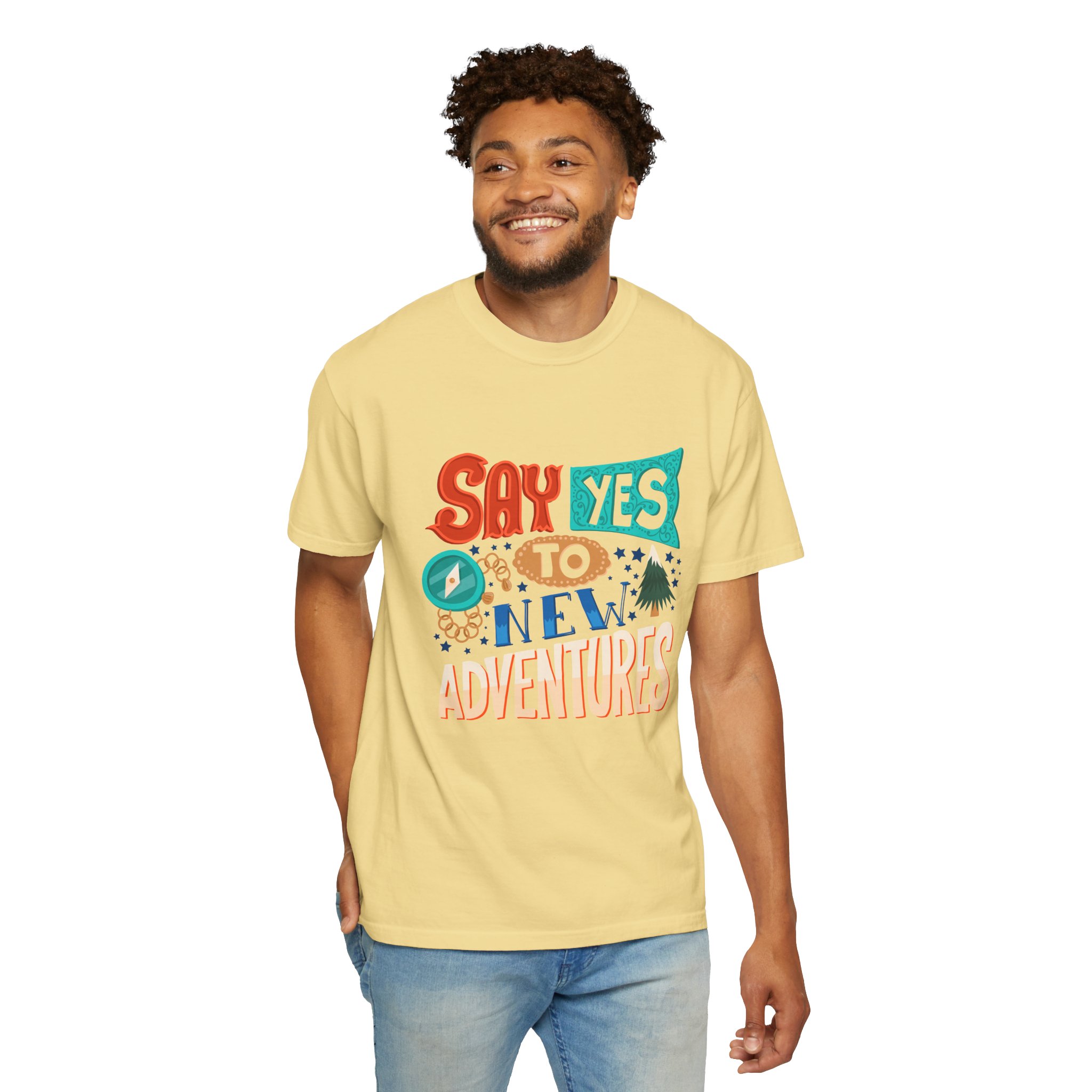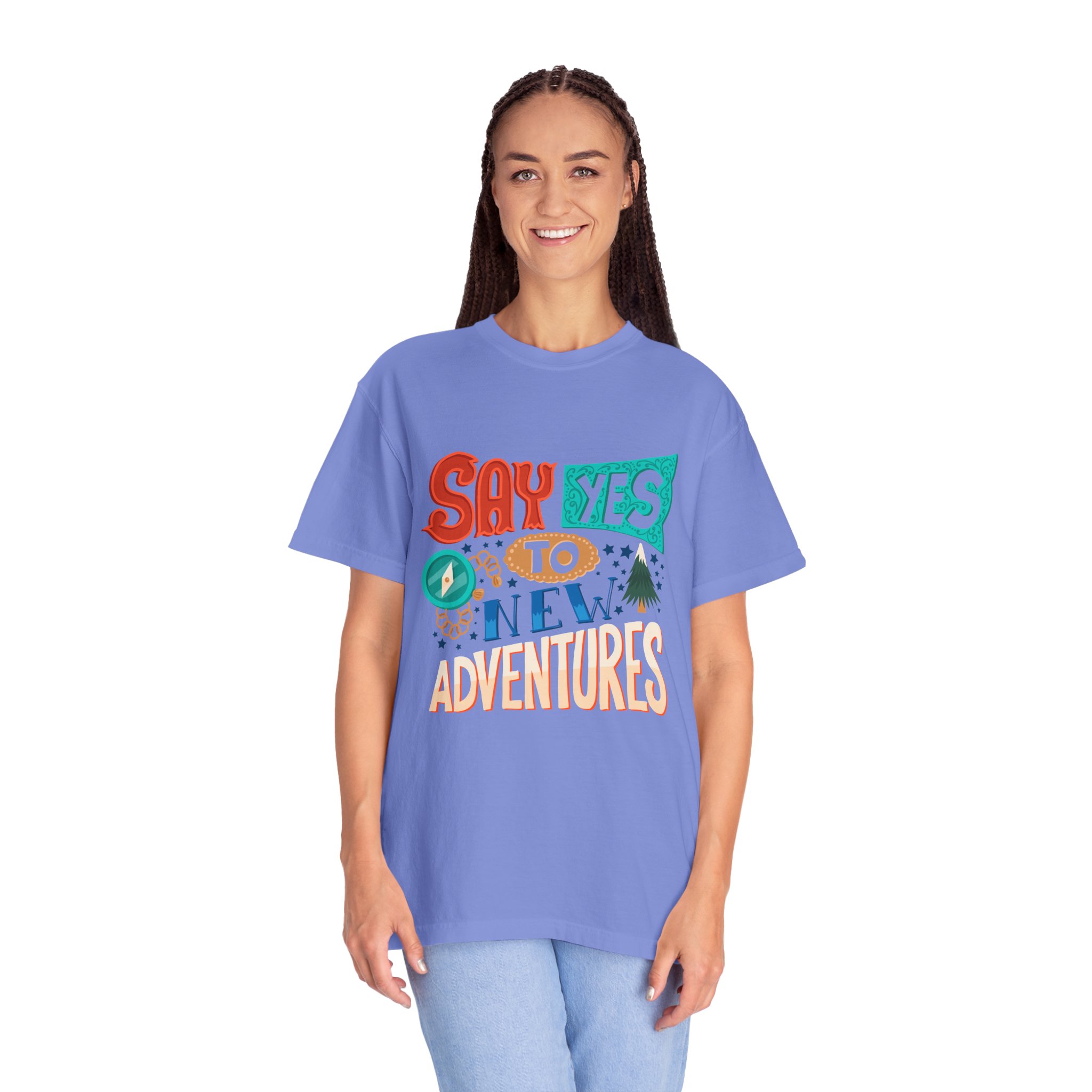 Introducing our Unisex Garment-Dyed T-shirt, designed for those who embrace adventure and positivity. With a fun and vibrant print that reads “Say Yes to New Adventures,” this tee inspires spontaneity and joy in everyday life. Perfect for casual outings, vacations, or simply lounging at home, this t-shirt fits seamlessly into any laid-back wardrobe. It’s a great gift idea for friends, travelers, or anyone celebrating milestones, birthdays, or holidays like New Year’s and summer festivals. Wear it as a reminder to seize the day!