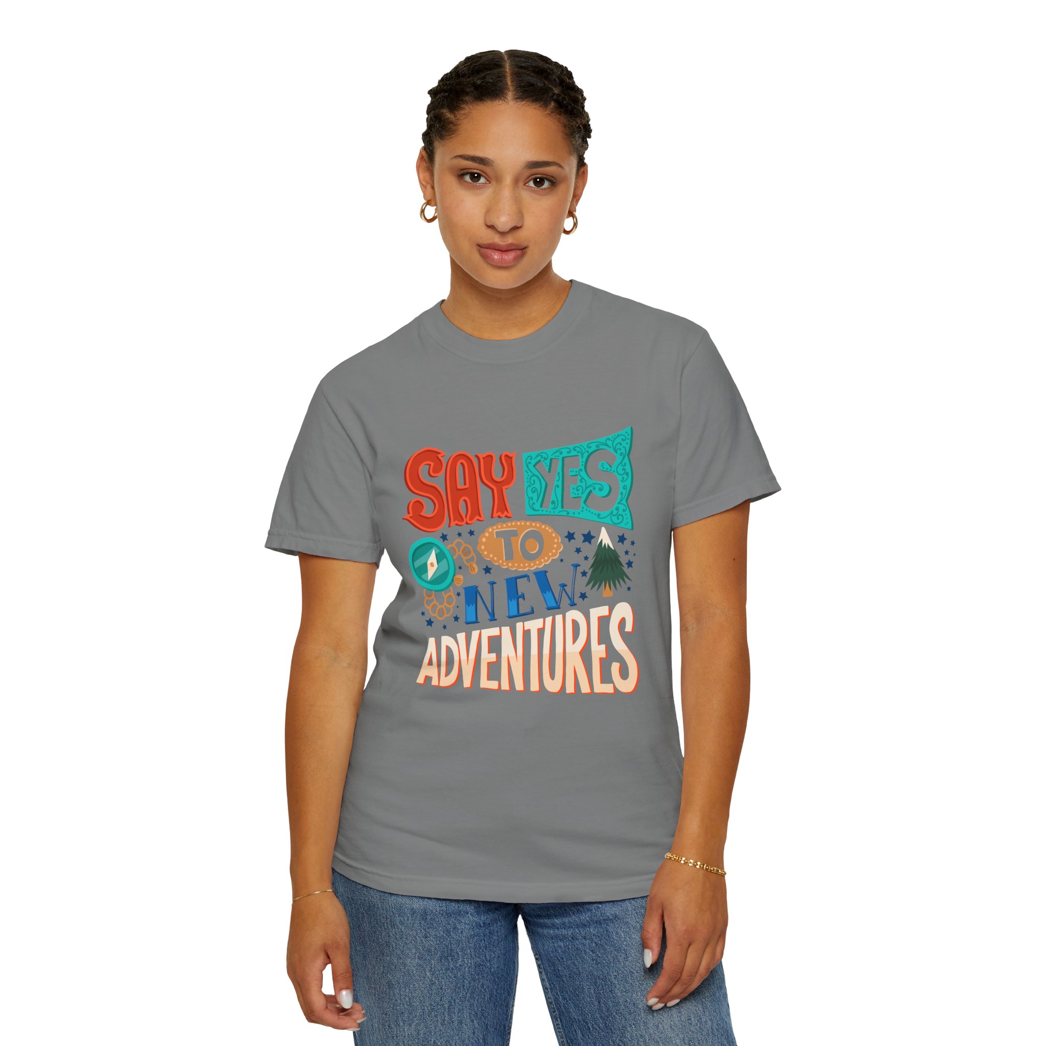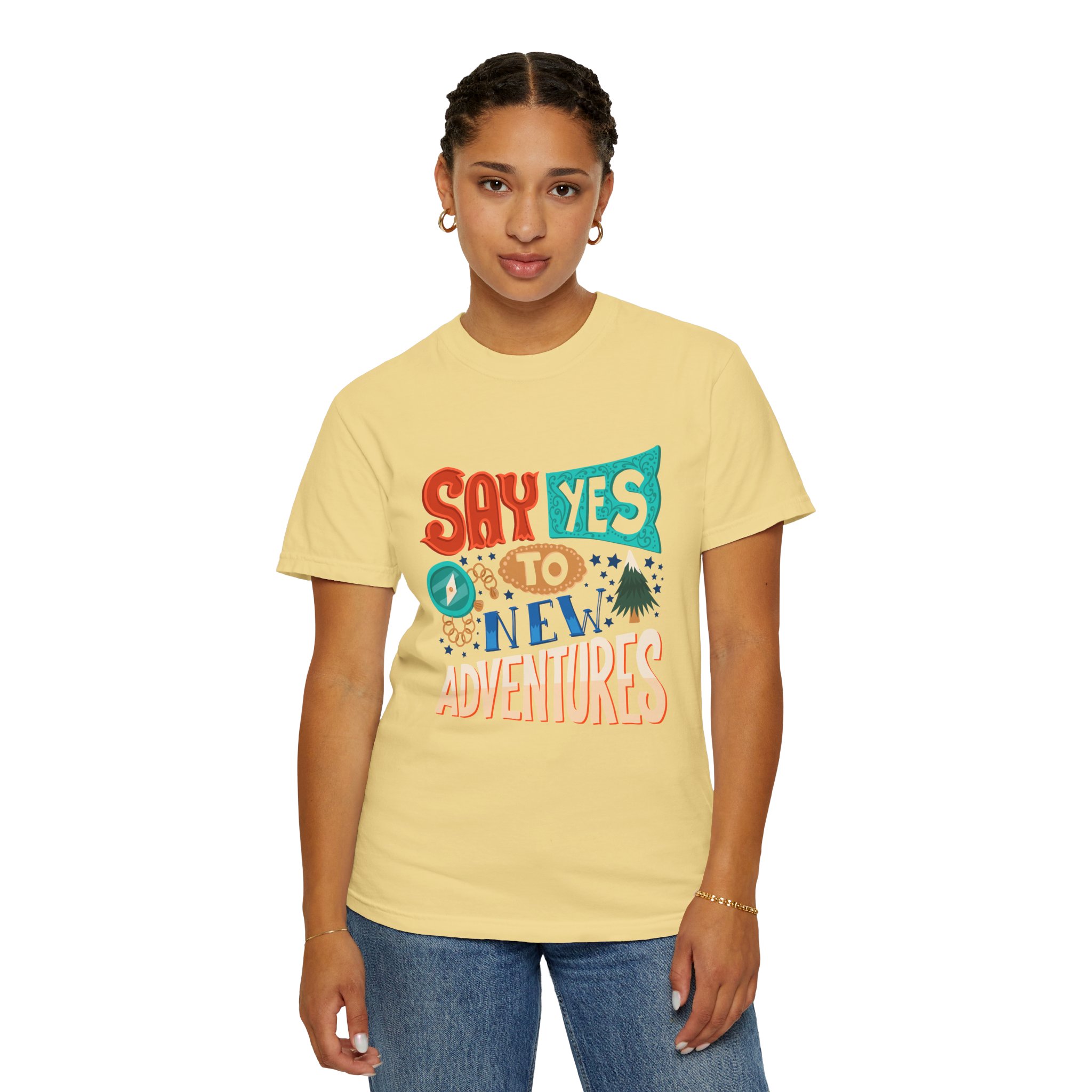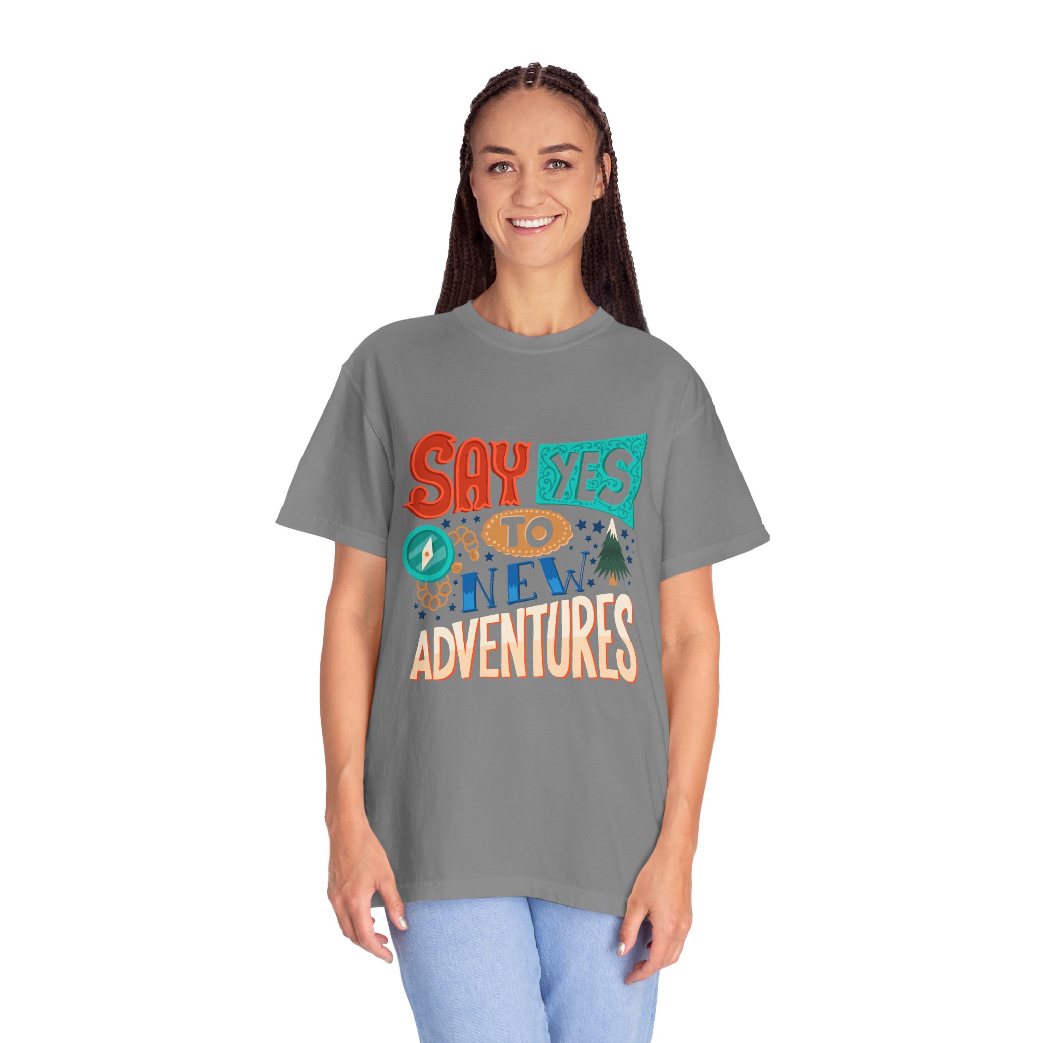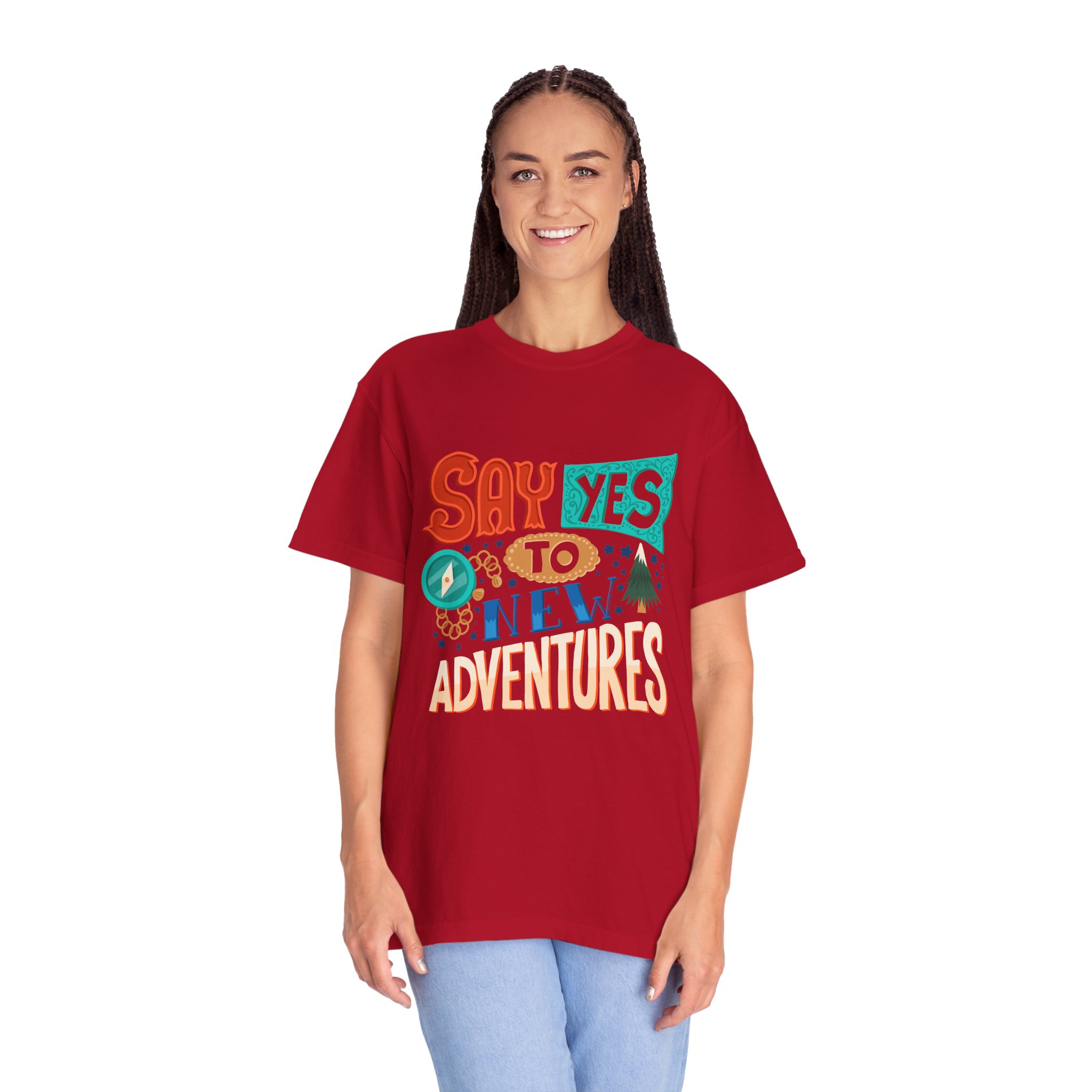 Introducing our Unisex Garment-Dyed T-shirt, designed for those who embrace adventure and positivity. With a fun and vibrant print that reads “Say Yes to New Adventures,” this tee inspires spontaneity and joy in everyday life. Perfect for casual outings, vacations, or simply lounging at home, this t-shirt fits seamlessly into any laid-back wardrobe. It’s a great gift idea for friends, travelers, or anyone celebrating milestones, birthdays, or holidays like New Year’s and summer festivals. Wear it as a reminder to seize the day!