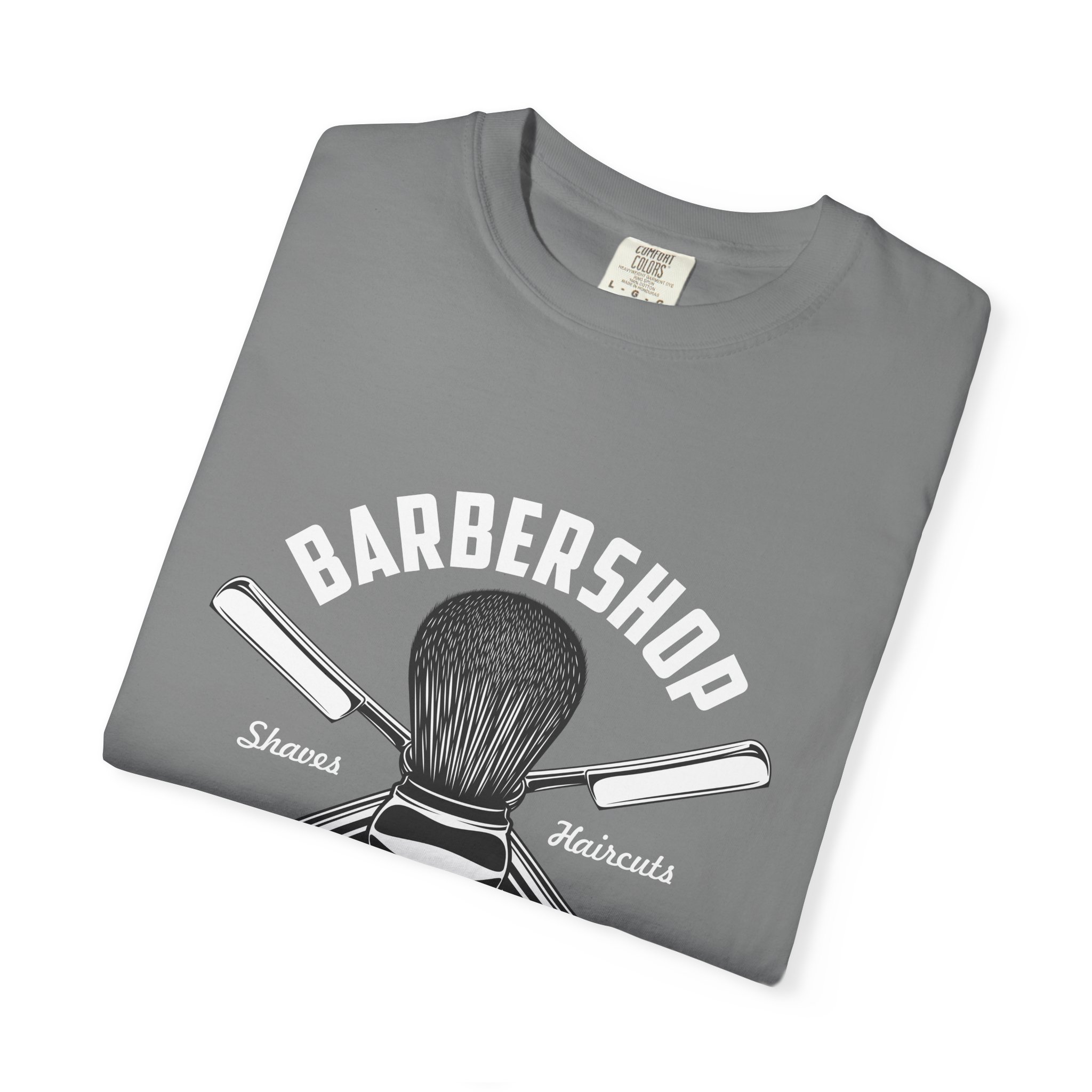 Barbershop Unisex Garment-Dyed T-shirt | Vintage Barber Apparel, Great for Gents, Haircut Lovers, Casual Wear, Gift for Father’s Day.