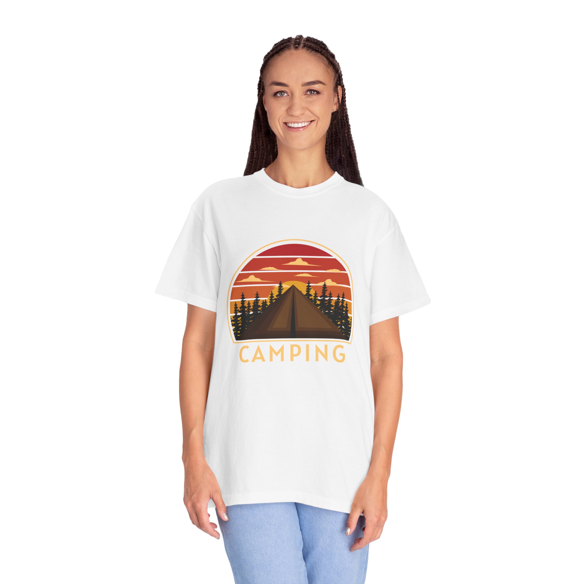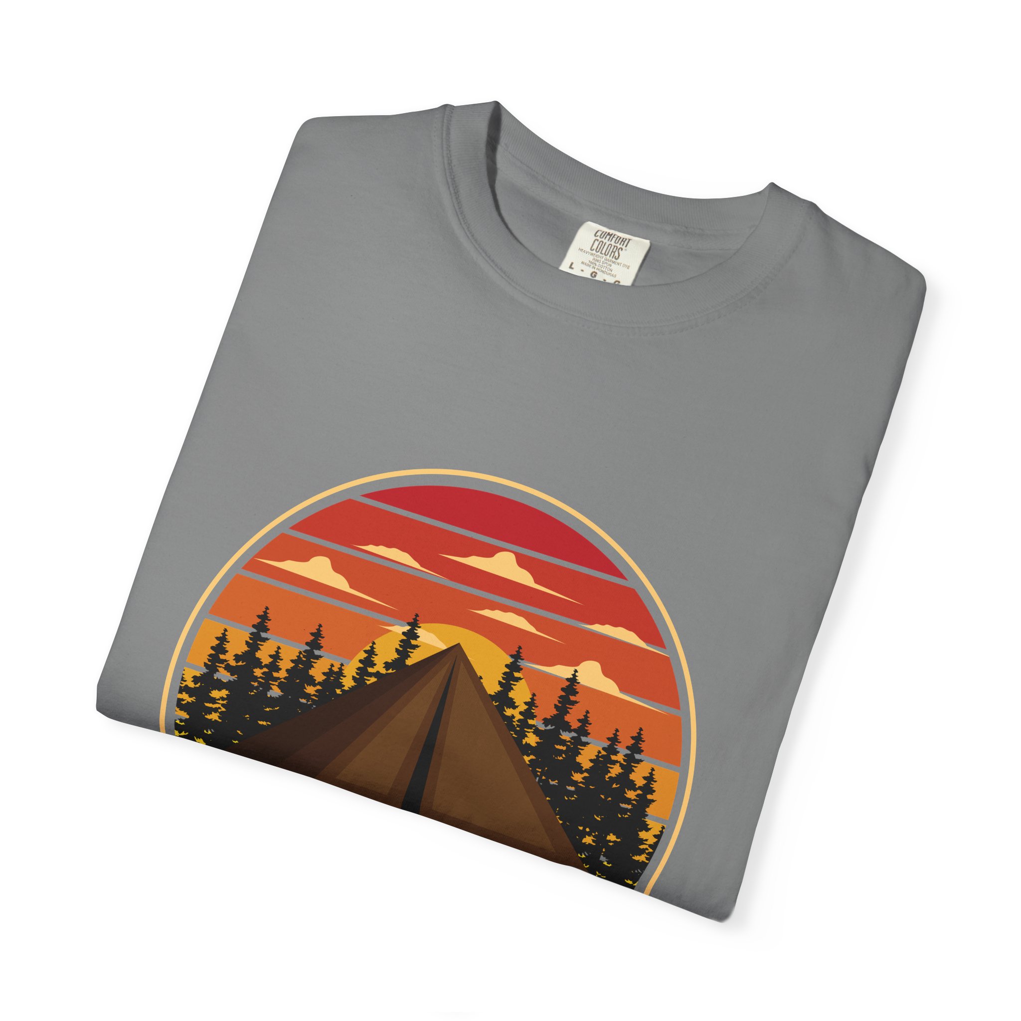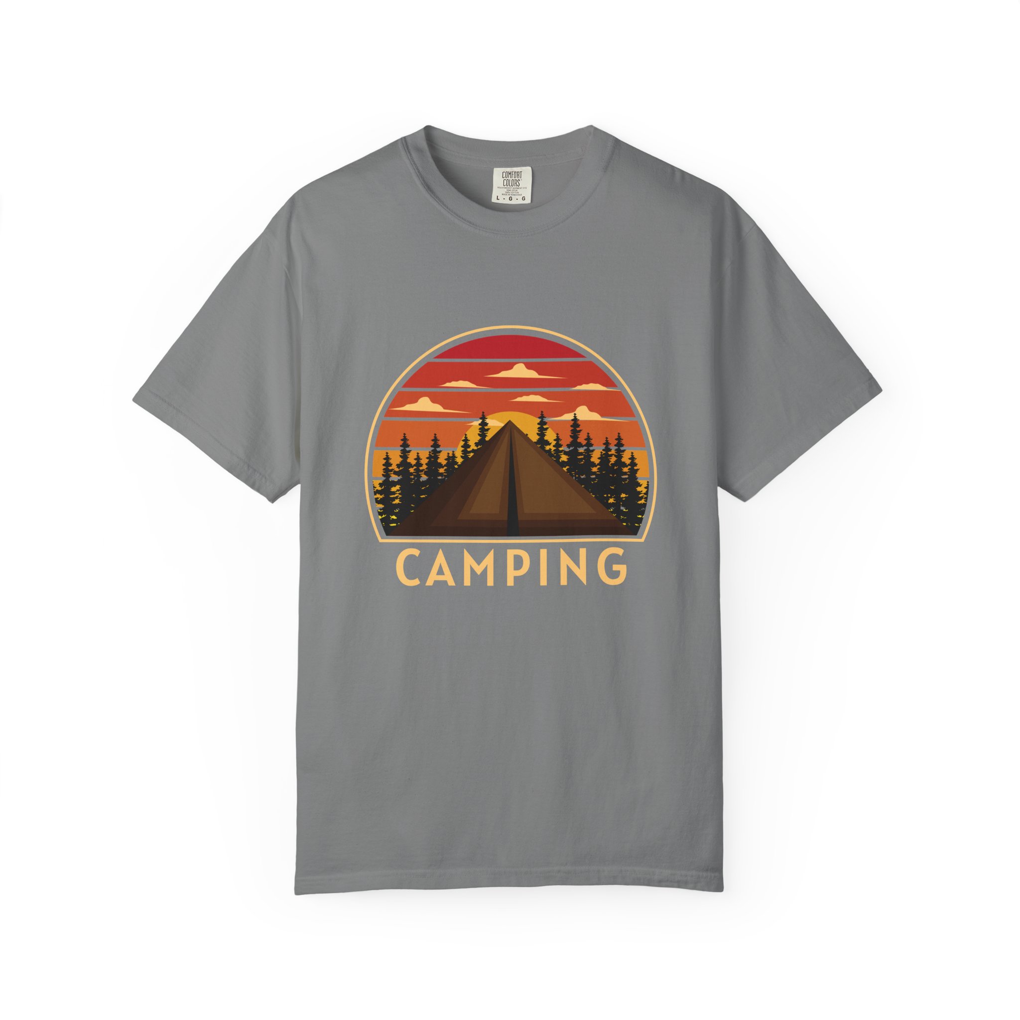 Embrace the great outdoors with this stylish unisex garment-dyed t-shirt, perfect for nature enthusiasts and adventure seekers. This shirt showcases a vibrant camping-themed design, bringing a touch of the wilderness to your everyday wardrobe. Crafted from 100% ring-spun US cotton, it offers a relaxed fit and unparalleled comfort, making it an ideal choice for hiking trips, casual outings, or simply lounging at home. With a medium fabric weight, it transitions seamlessly through all seasons. This t-shirt is perfect for camping trips, outdoor festivals, and family gatherings, making it a thoughtful gift for those who cherish nature and adventure.