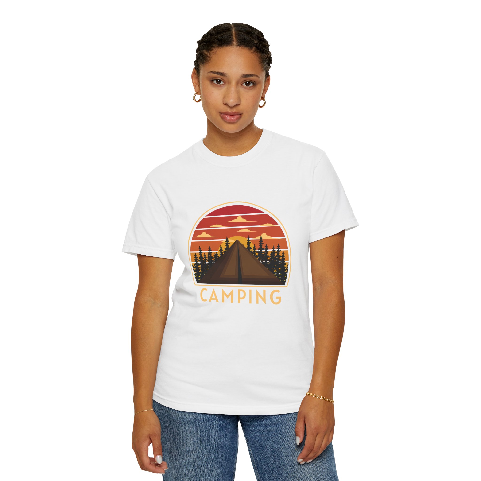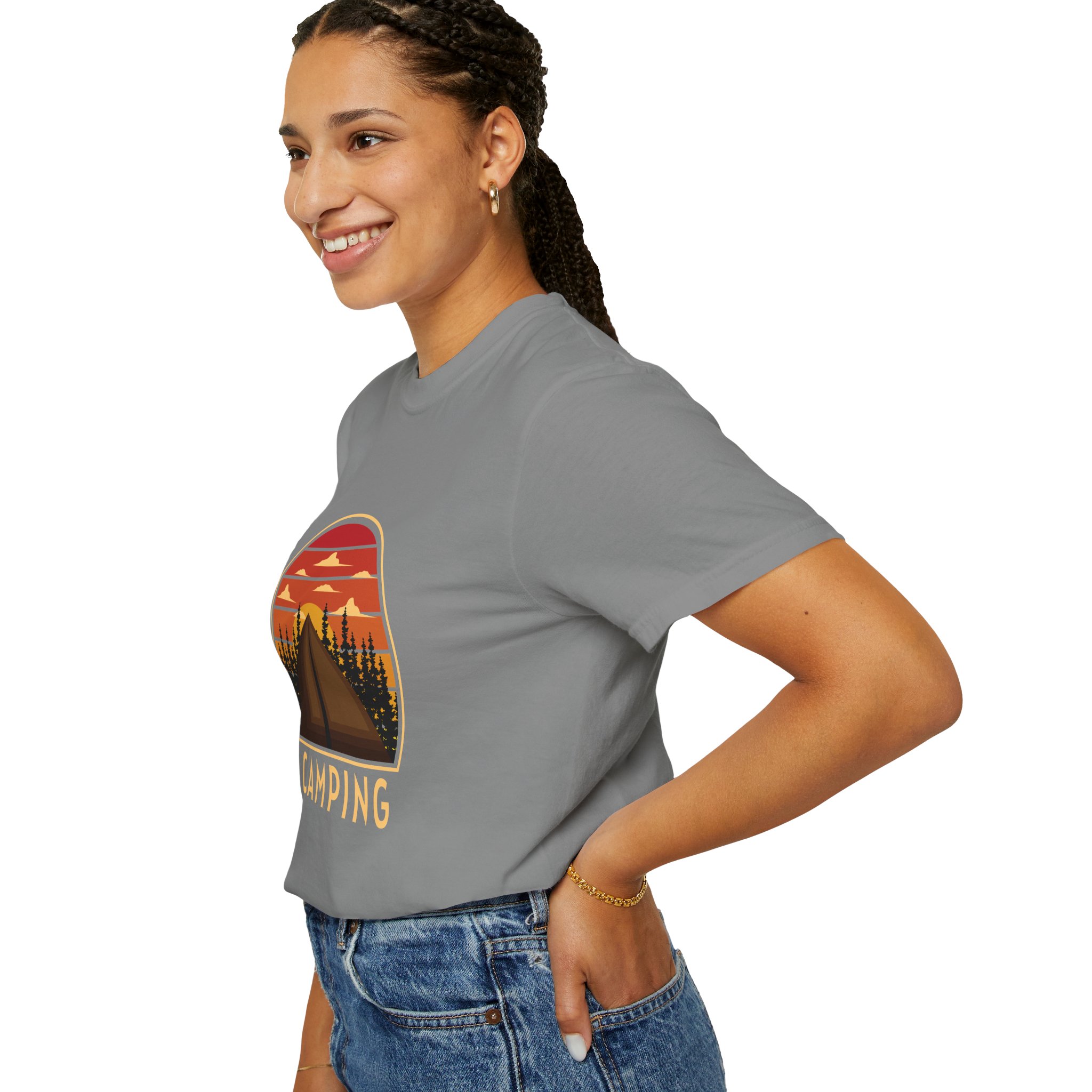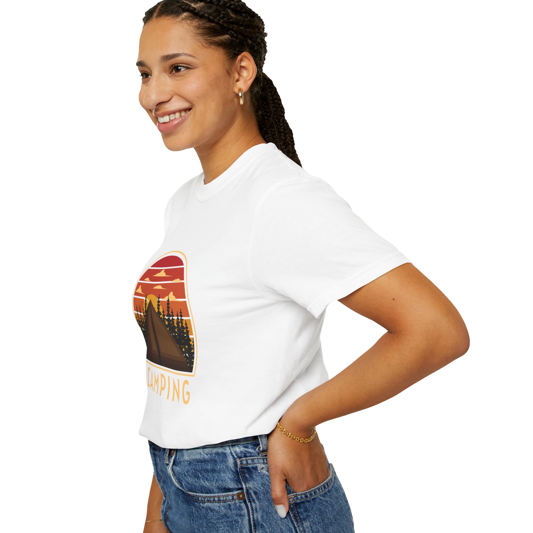 Embrace the great outdoors with this stylish unisex garment-dyed t-shirt, perfect for nature enthusiasts and adventure seekers. This shirt showcases a vibrant camping-themed design, bringing a touch of the wilderness to your everyday wardrobe. Crafted from 100% ring-spun US cotton, it offers a relaxed fit and unparalleled comfort, making it an ideal choice for hiking trips, casual outings, or simply lounging at home. With a medium fabric weight, it transitions seamlessly through all seasons. This t-shirt is perfect for camping trips, outdoor festivals, and family gatherings, making it a thoughtful gift for those who cherish nature and adventure.