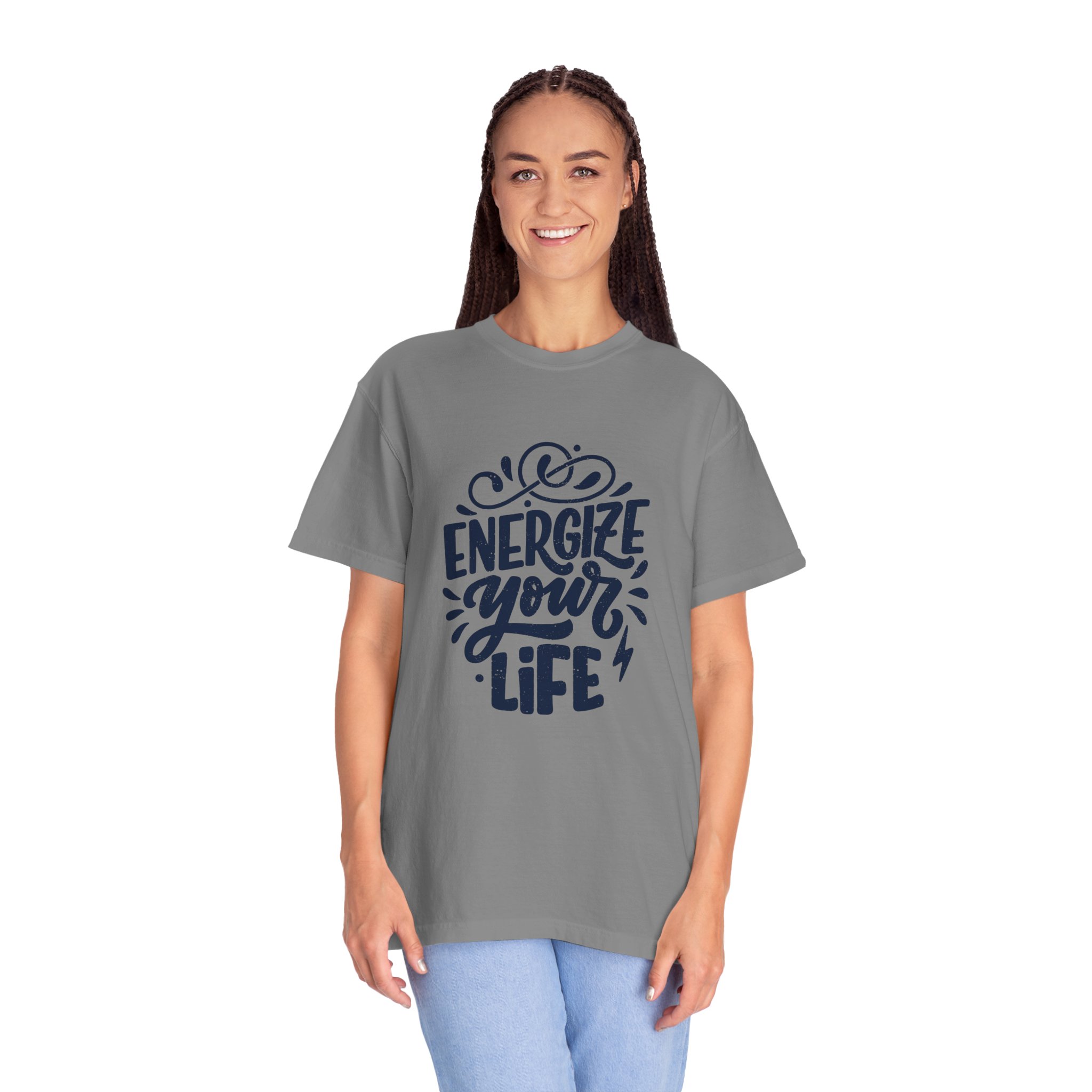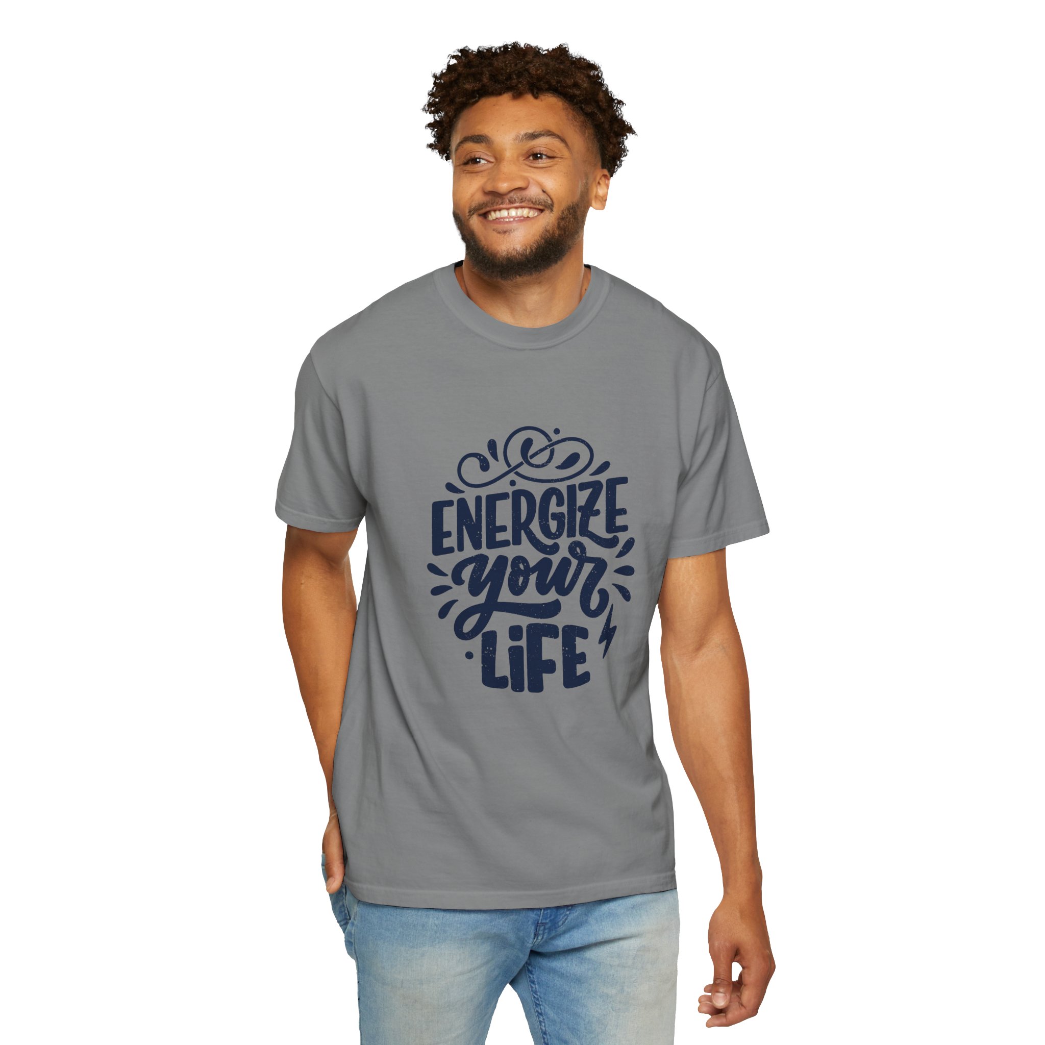 Introducing our Unisex Garment-Dyed T-shirt, a perfect blend of style and comfort. This tee radiates positive energy with its vibrant ‘Energize Your Life’ design, making it an ideal choice for anyone looking to add a spark to their everyday wardrobe. The relaxed fit ensures all-day wearability, while the soft, garment-dyed fabric provides a lived-in feel right from the first wear. Whether you’re relaxing at home, hitting the gym, or enjoying a casual day out, this shirt fits seamlessly into your lifestyle. Perfect for teens, young adults, or anyone who loves to express positivity and motivation. Great for birthdays, casual gatherings, or just as a treat for yourself during the holidays!